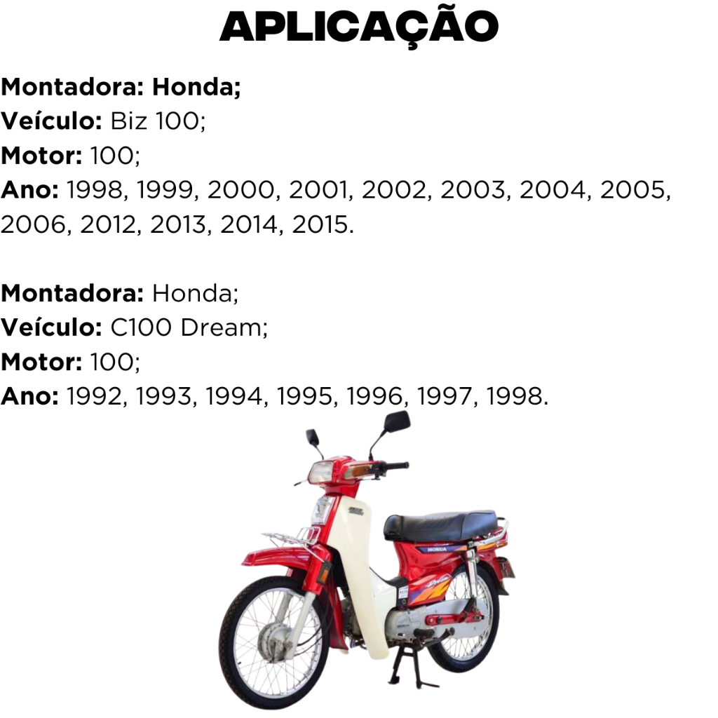 Kit Cilindro Pistão para Motor Biz 100 C100 Dream 1992 a 2015 Metal Leve