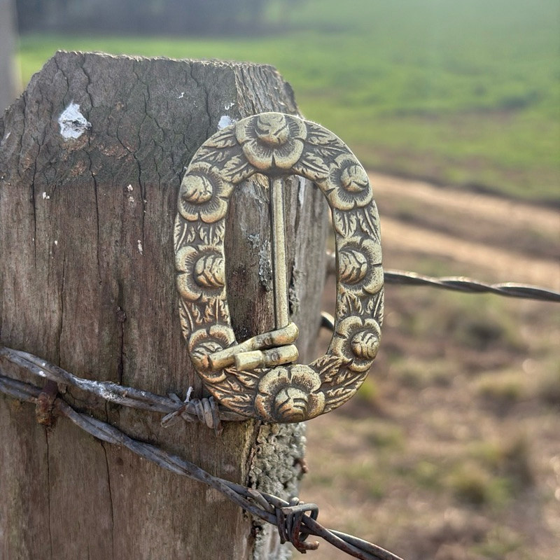 Fivela 113 8 Rosas Corneta IDÊNTICA ALPACA - Ouro Velho ALPACA
