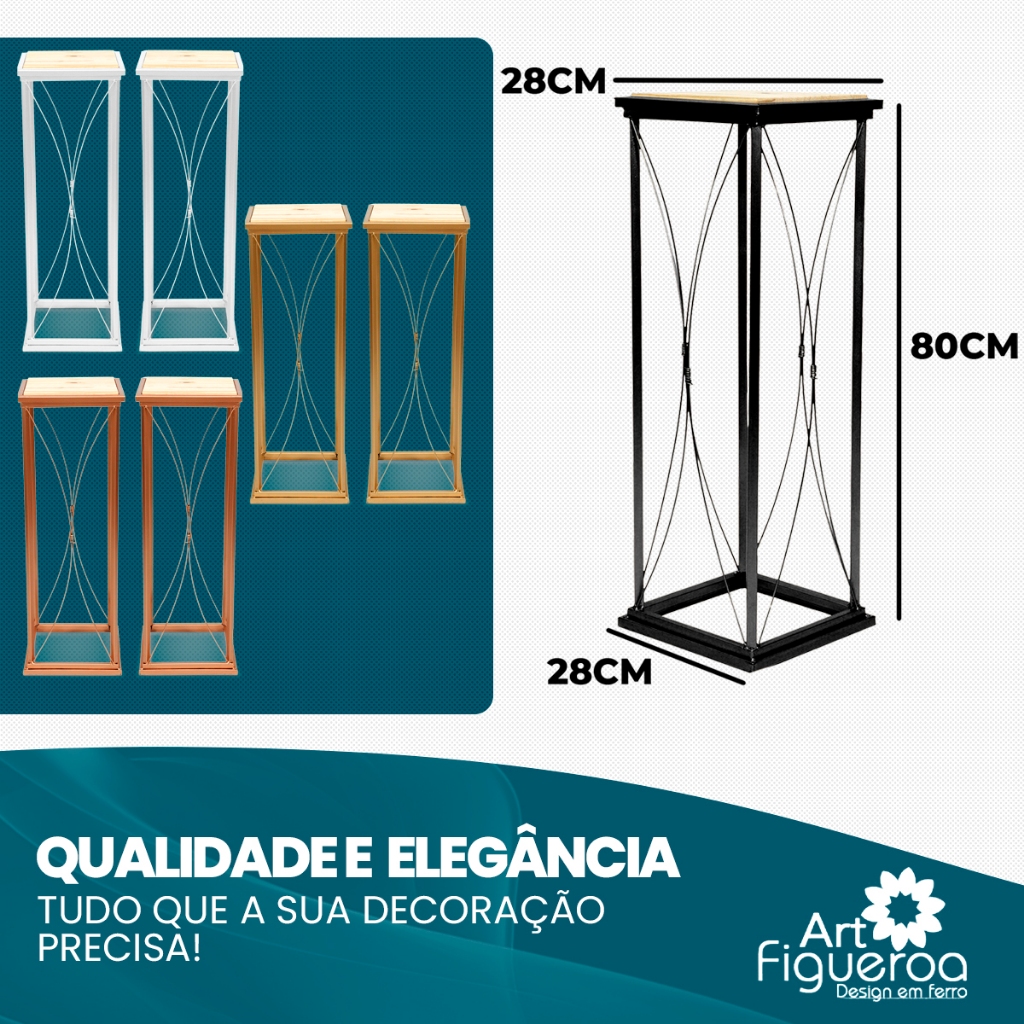 Kit 2 Colunas Quadradas 80x28cm C/ Tampo de Madeira Decoração Festa