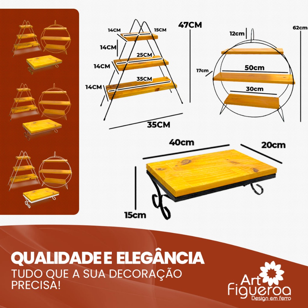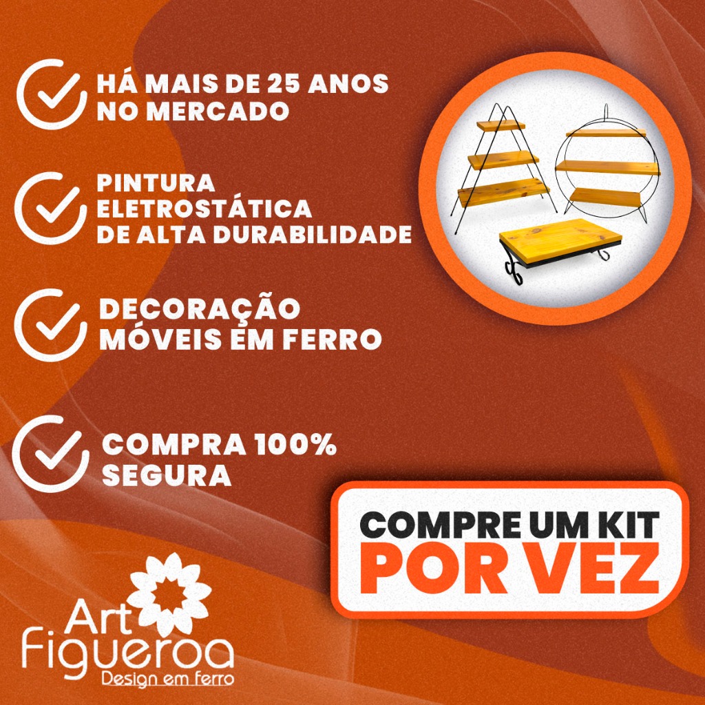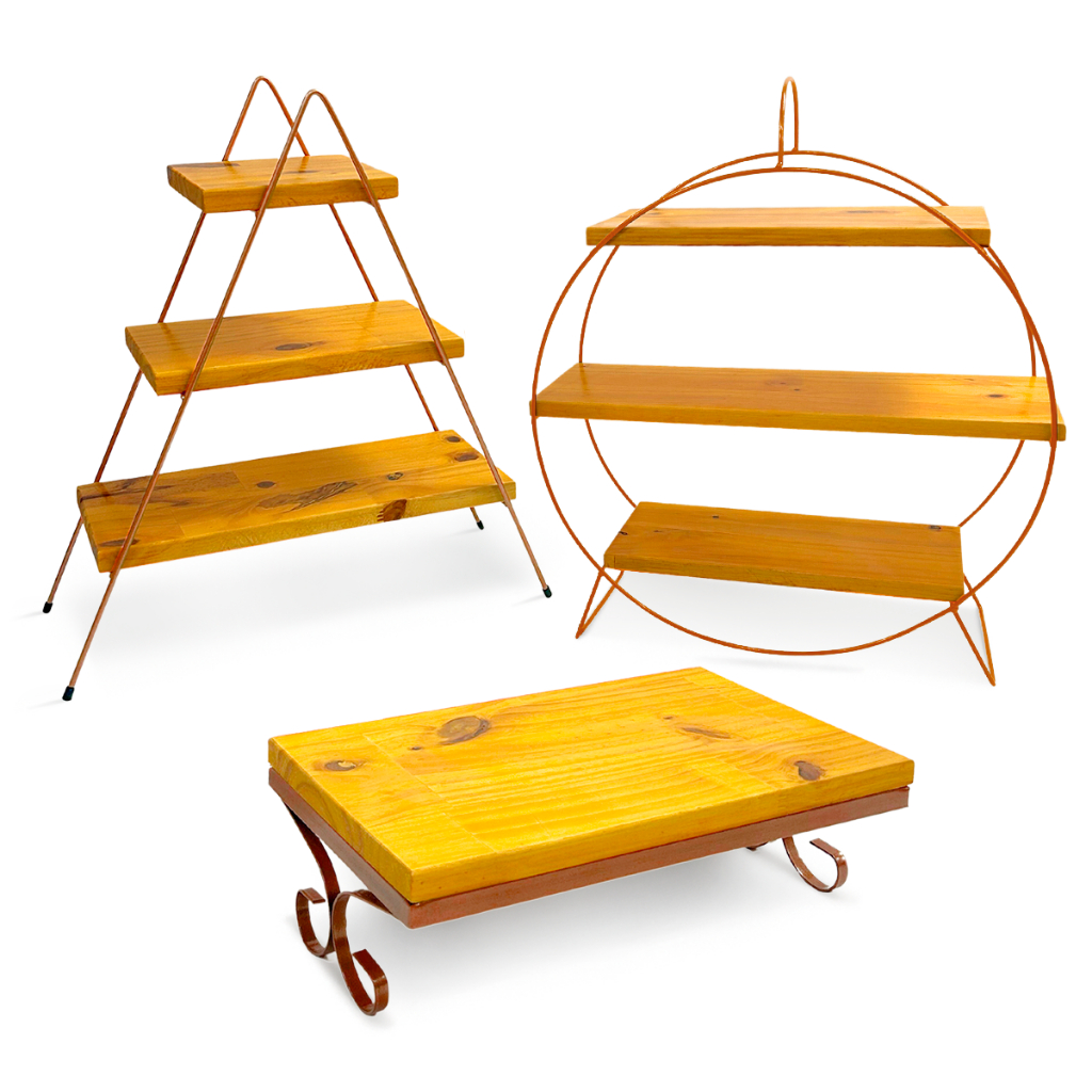 Kit 3 Prateleiras Suporte Doces Ferro Envernizada