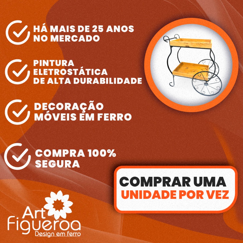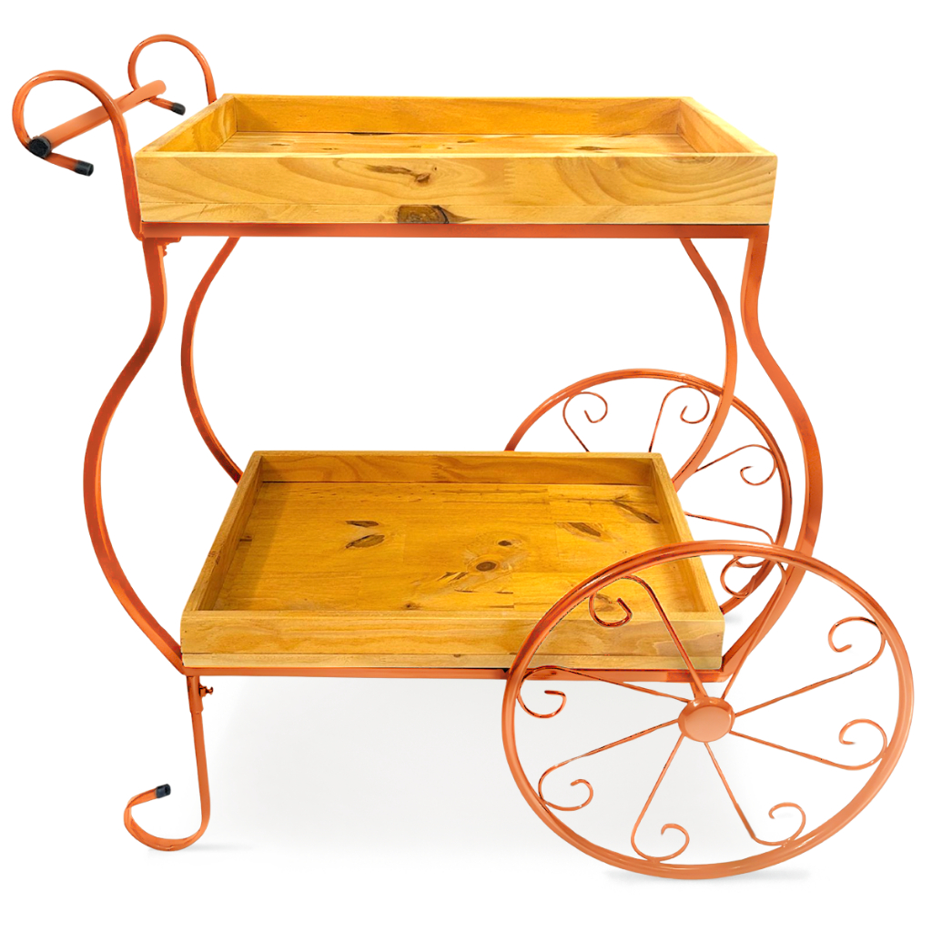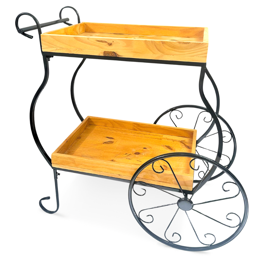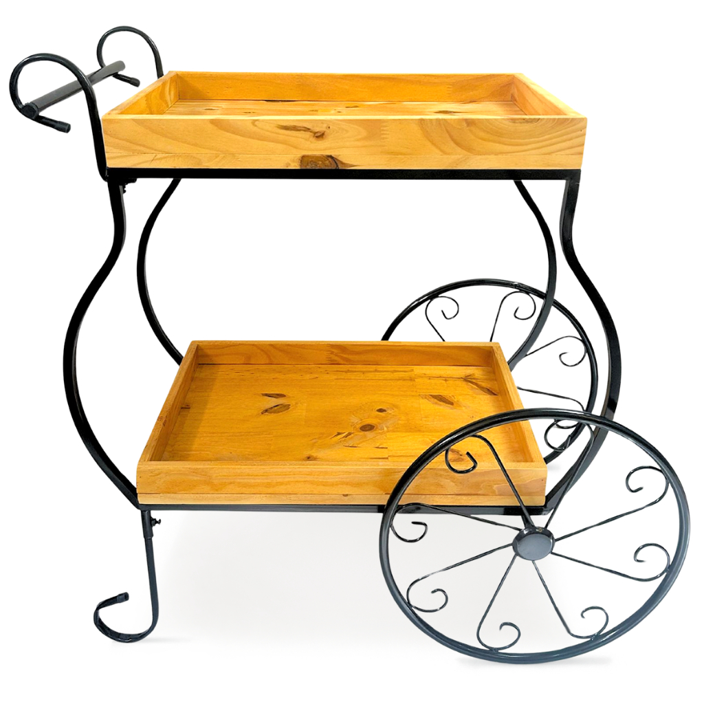 Carrinho de Chá Elegante Com Borda Artesanal Madeira e Ferro p/ Decoração Buffet Festas e Casamentos