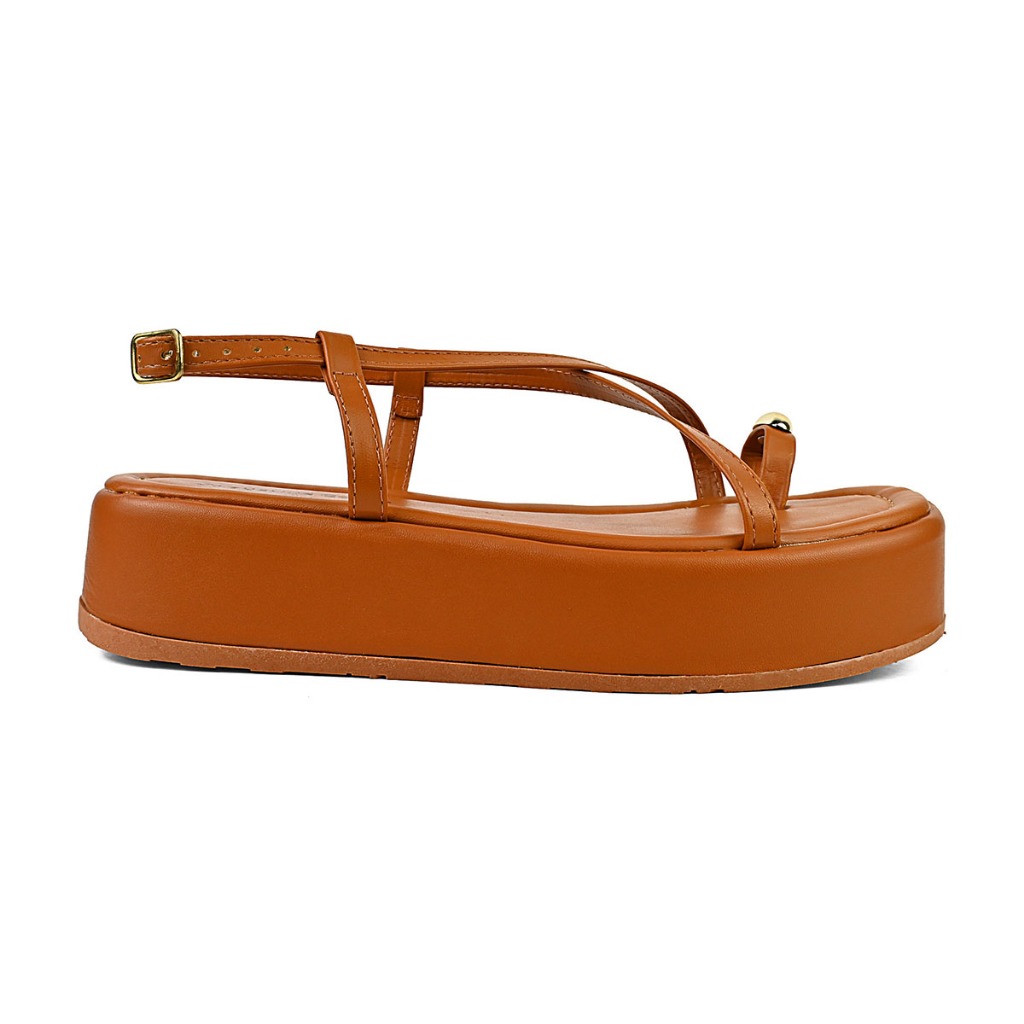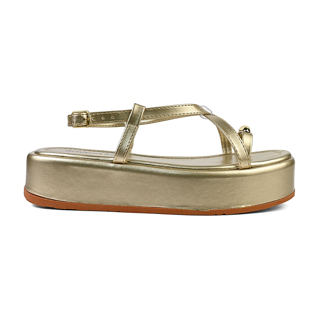 Sandália Feminina Flat Plataforma Detalhe em ABS Dourado Moda Tendência Conforto Verão Hope Shoes