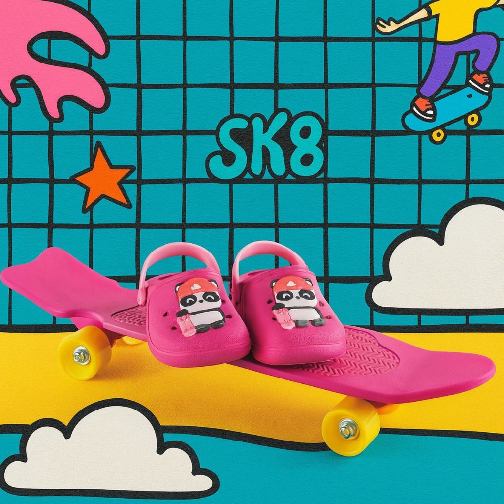 Kit 1 Babuche Menina Criança Pandinha Infantil Personagem + 1 Skate Rosa Para promocao