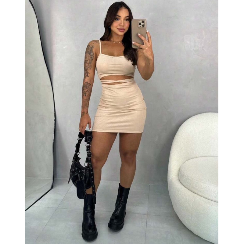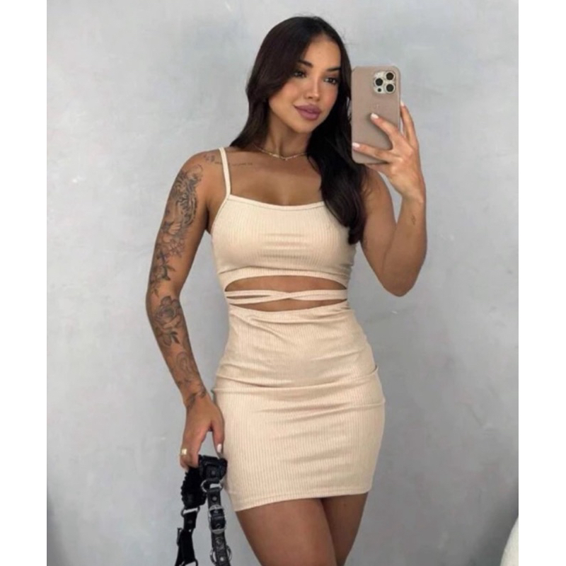 Vestido Feminino Modelador Canelado