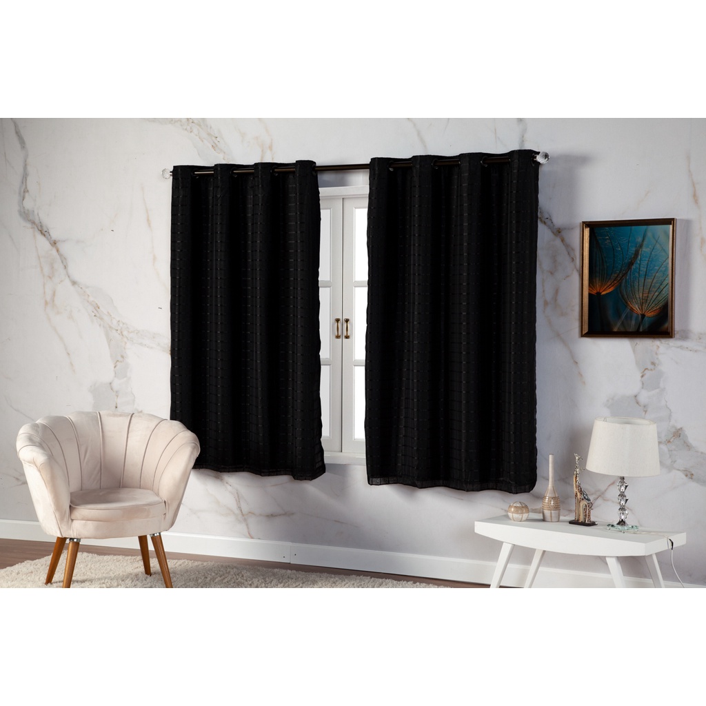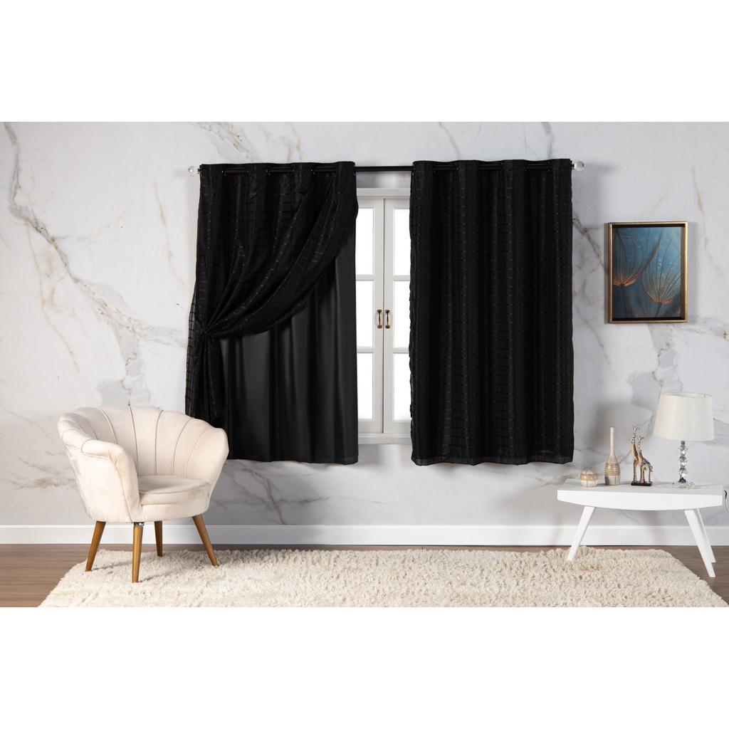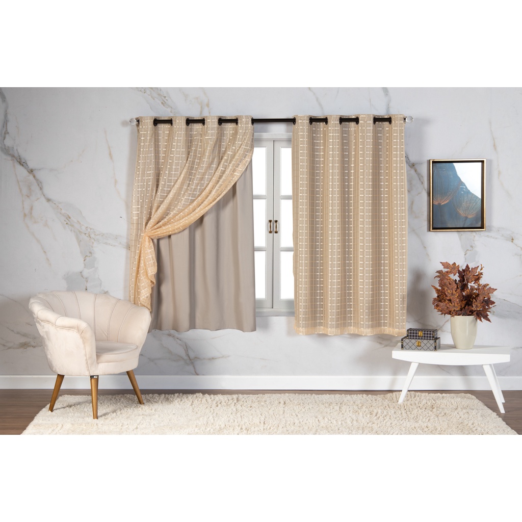 Cortina Com Blackout 2,80 m x 1,60 m PVC c/ Tecido Voil Xadrez Varias Cores Janela Quarto Sala Oferta