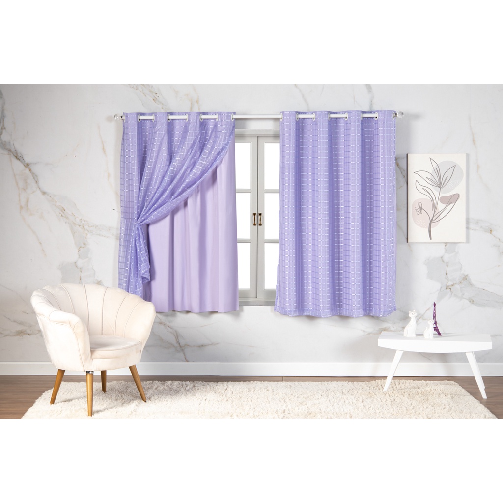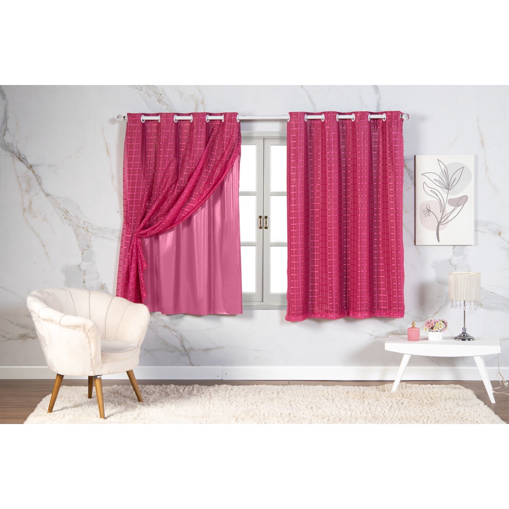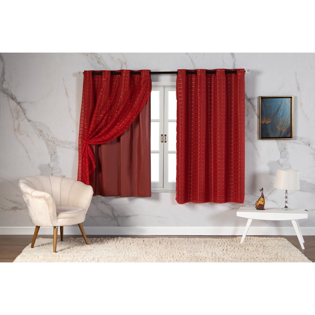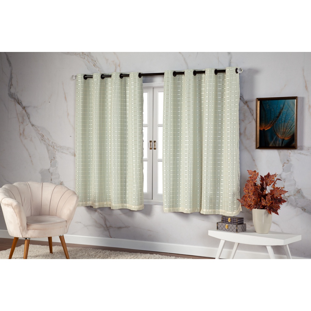 Cortina Com Blackout 2,80 m x 1,60 m PVC c/ Tecido Voil Xadrez Varias Cores Janela Quarto Sala Oferta
