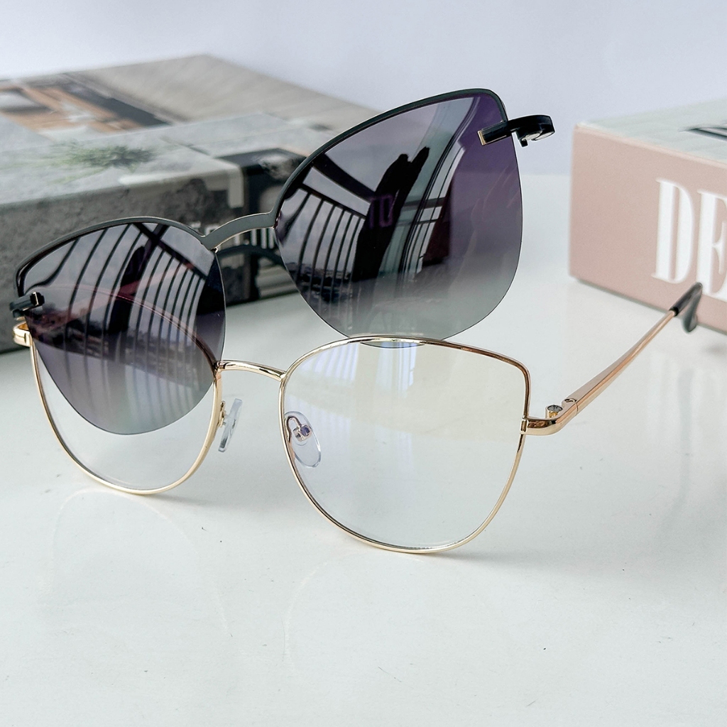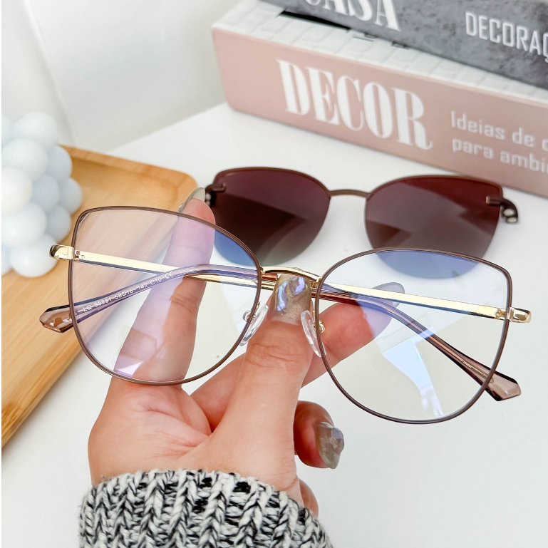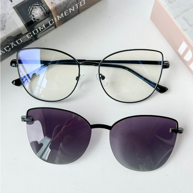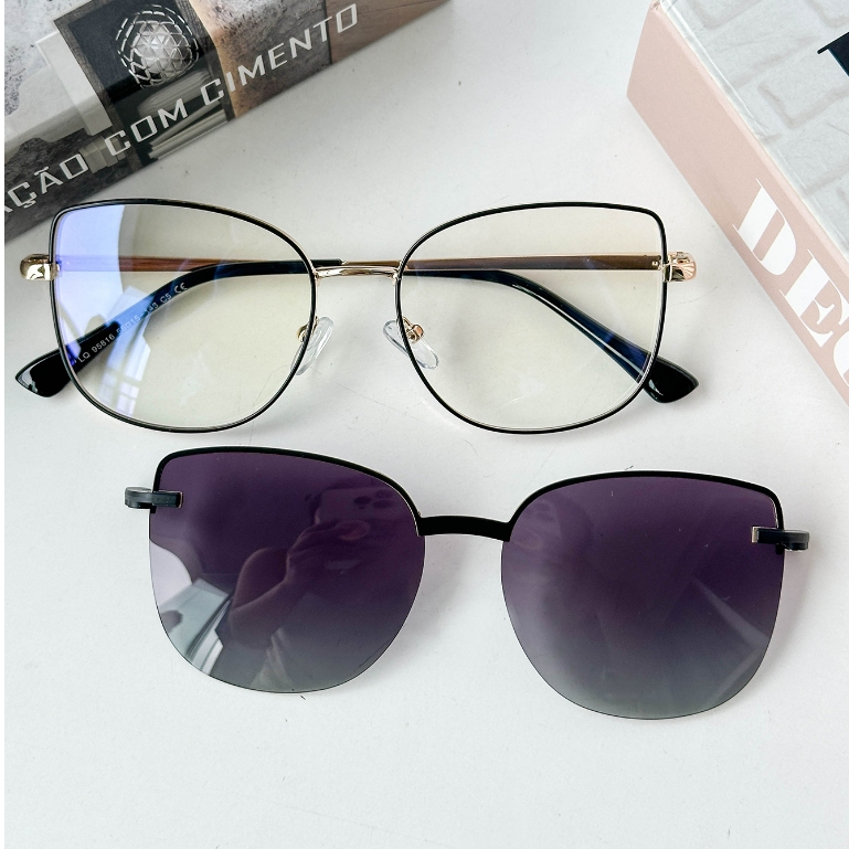 MELINDA MODA Armação Feminino Para Óculos de Grau Metal Rdondo Clipon 2 EM 1 um espelho plano+uma lente 95951