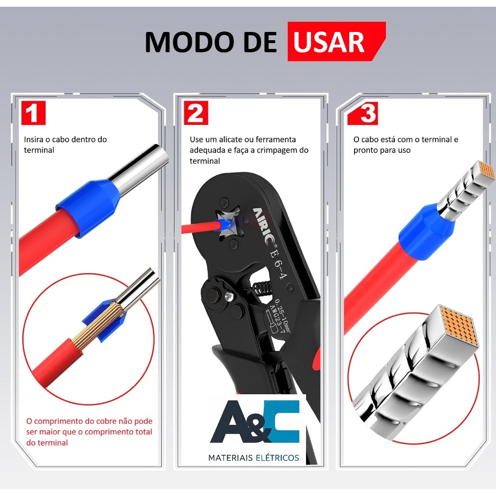 Terminal Elétrico Ilhós Tubular Simples E2508 - 2,5mm - 1000 / 2000 / 4000 Peças