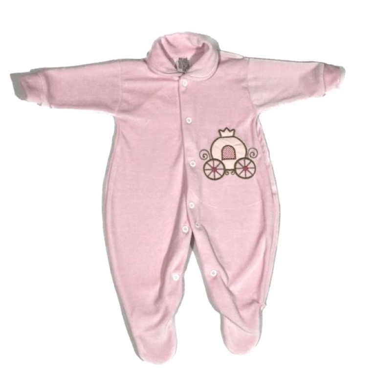 Macacão Bebê PLUSH Liso e Bordado em várias cores para Meninas. Muito Macio e Quentinho P M G