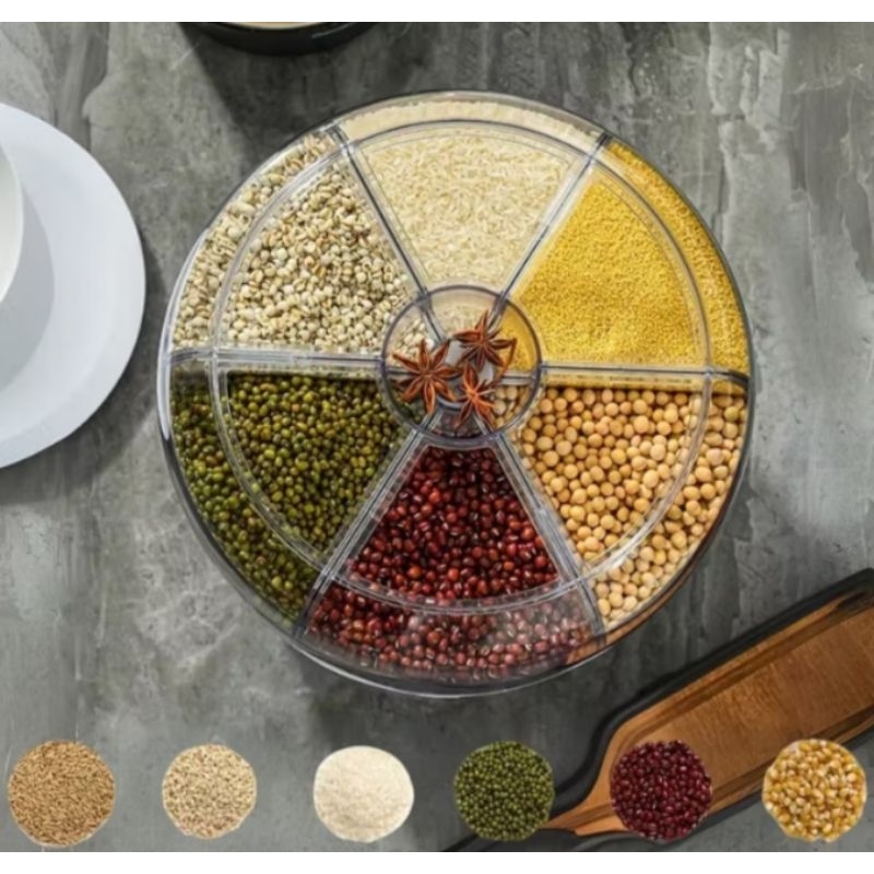 Porta Condimento Giratório 360° Para Grãos Cereais 6 Divisórias Feijão Arroz