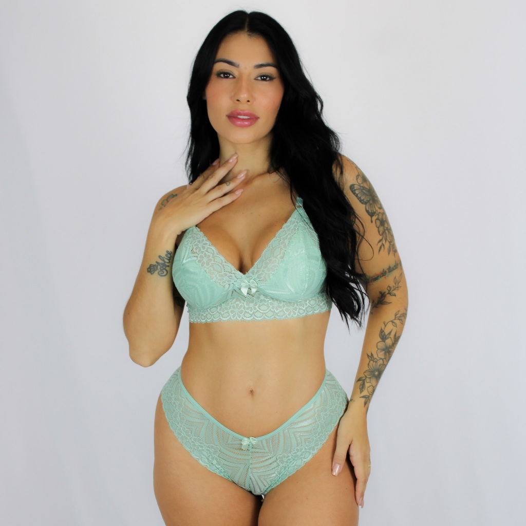 Conjunto Sexy Calcinha Sutiã Top Renda Com Fecho Atrás Moda Feminina Lingerie