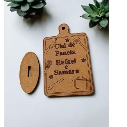 Lembrancinha MDF Personalizada para Chá de Panela – Com Suporte de Mesa (Mod.01)
