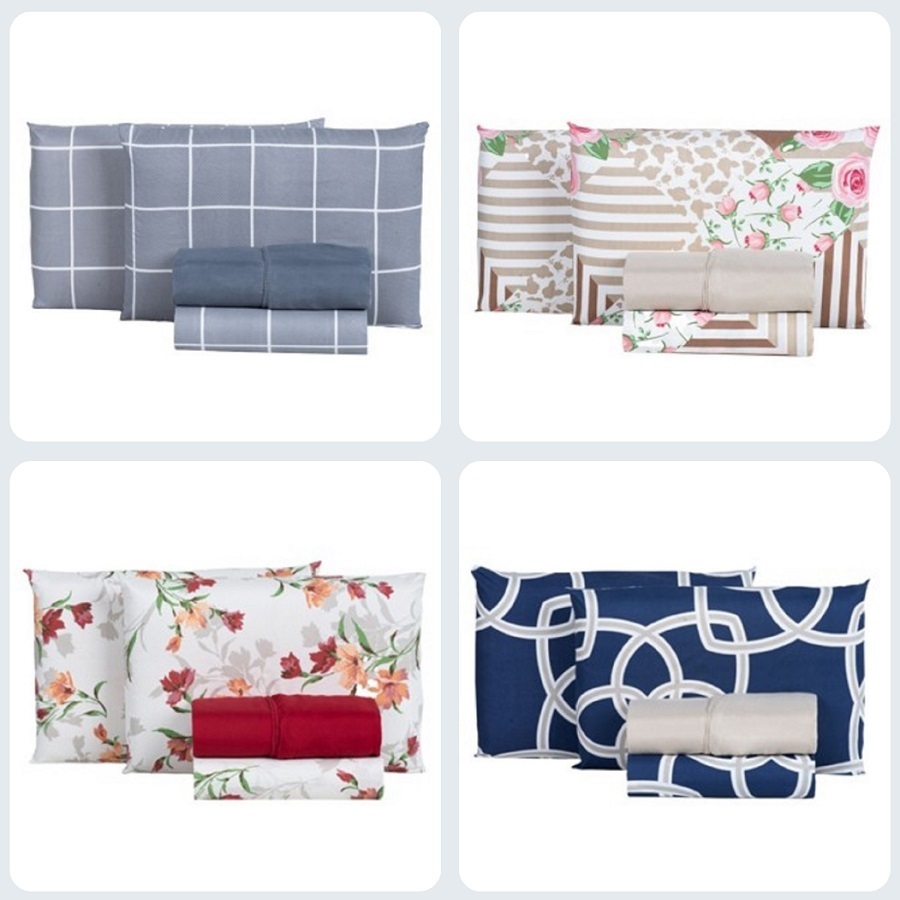 Kit Jogo de Lençol 3 Peças com Elástico e Fronhas Estampado 400 Fios