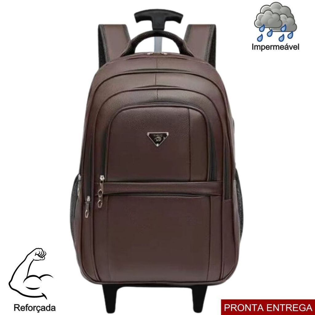 Mochila Bolsa De Rodinhas Couro Unissex Resistente Impermeável Trabalho Faculdade Cores