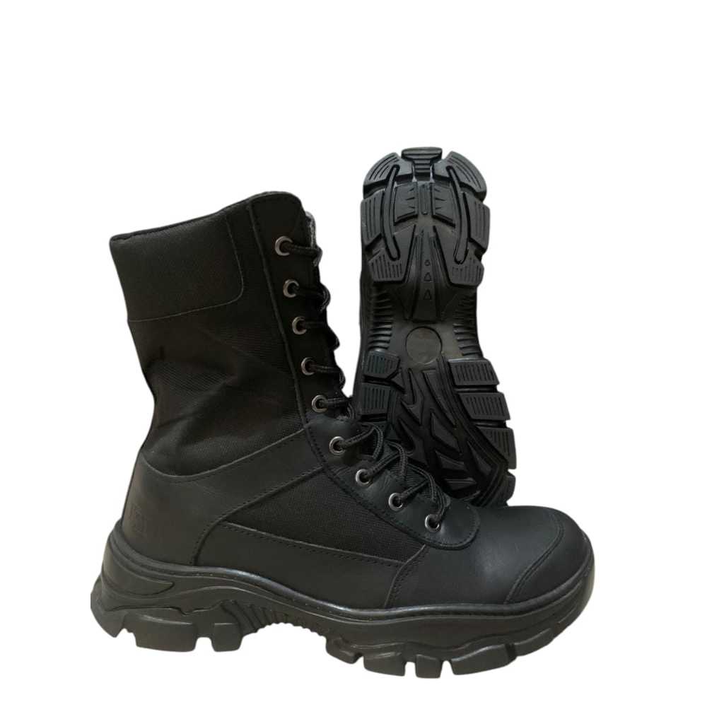 Coturno Militar Masculino Tático Com Zíper Confortável Blaqueado Couro Legítimo