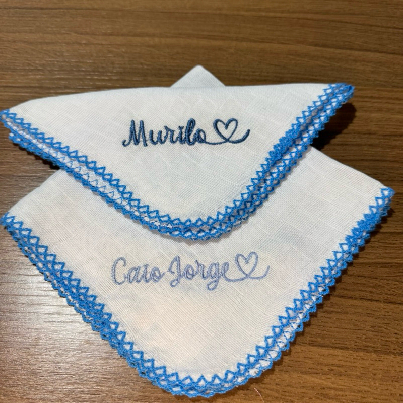 Fralda de Boca Enxoval Menino com Nome Bordado – Acabamento em Crochê Azul