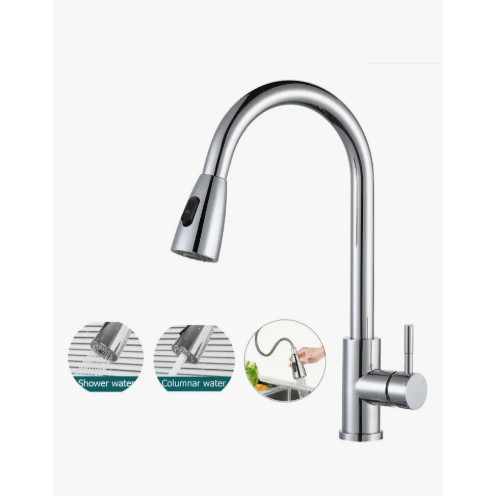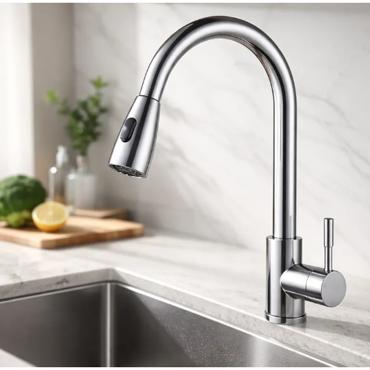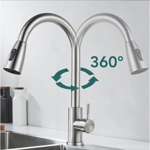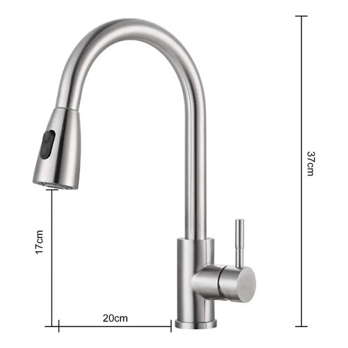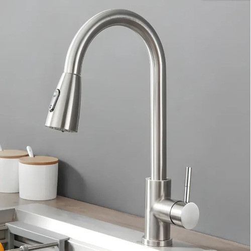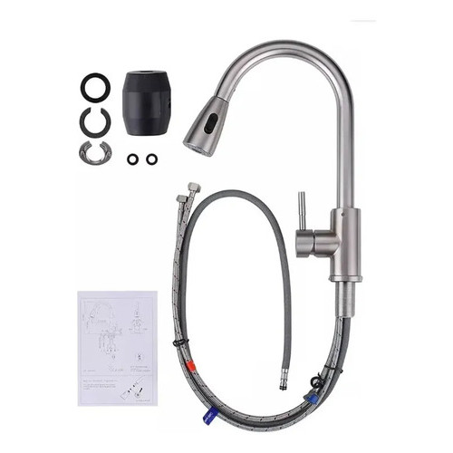 Torneira Para Cozinha Monocomando Extensível Pia Misturador Cinza Escovado