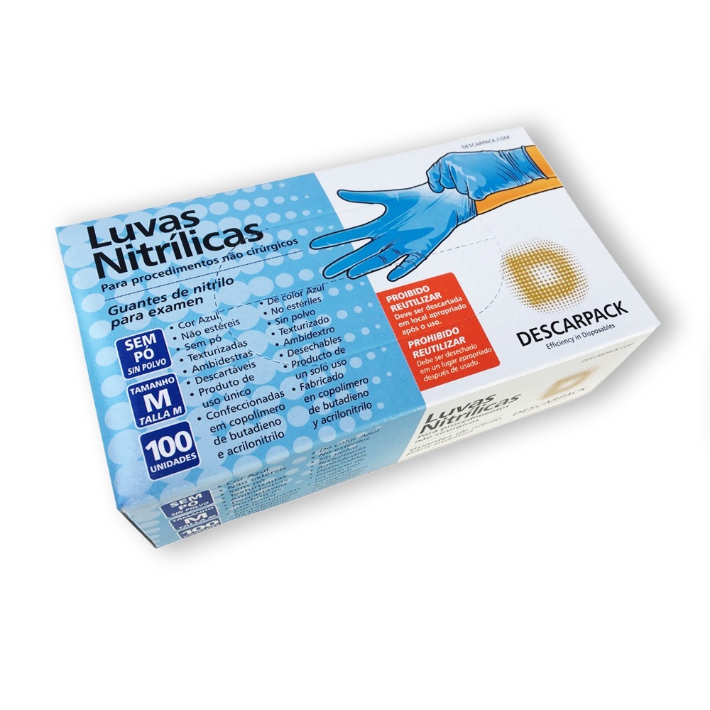 Luva Procedimentos Nitrílica Azul Sem Pó C/100 - P / M E G