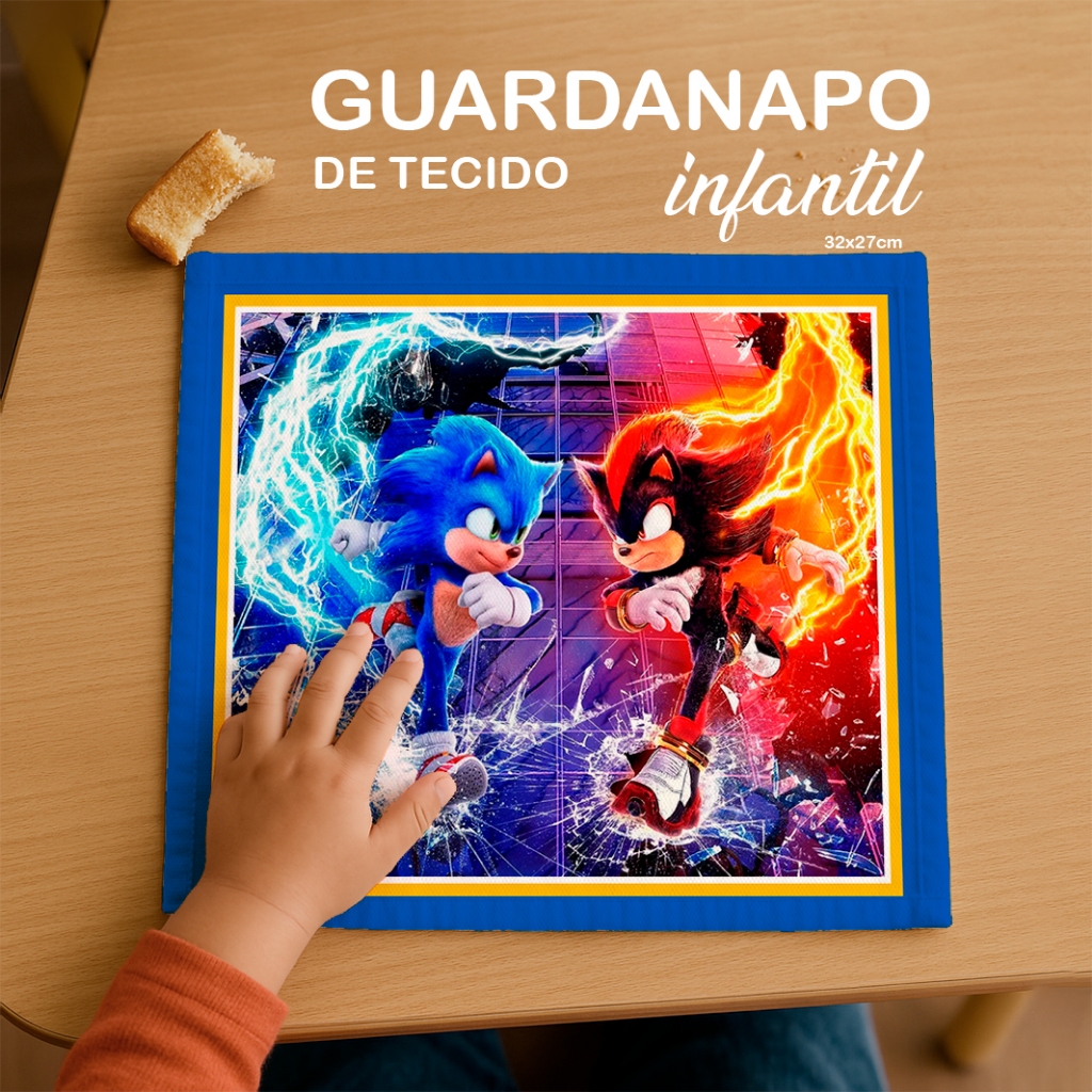 Kit de Guardanapo de Tecido Sonic – Ideal para Lanche Escolar - Kit lancheira - Infantil - R36