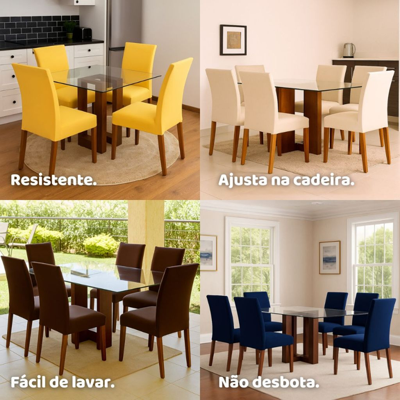 Kit 4 Capa de Cadeira para Mesa Jantar - Super Luxo Malha Gel - Cores Variadas