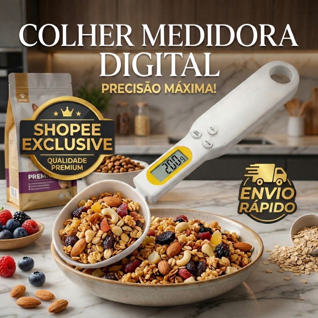 Colher Balança Digital Para Cozinha e Ração Pet Medidor de Precisão 500g Pegador Alimento Portátil Prática Fácil Usar