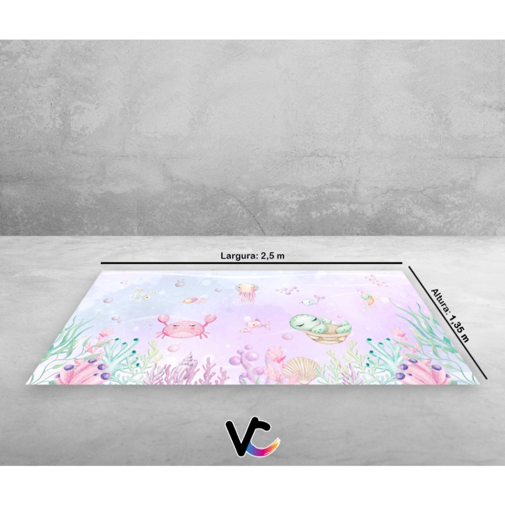 Painel De Festa Tapete Em Lona 2,50x1,35 - Fundo do Mar Lilás Aquarela 019