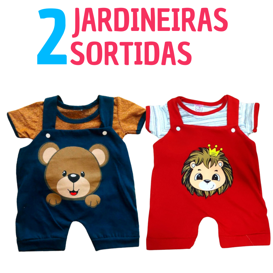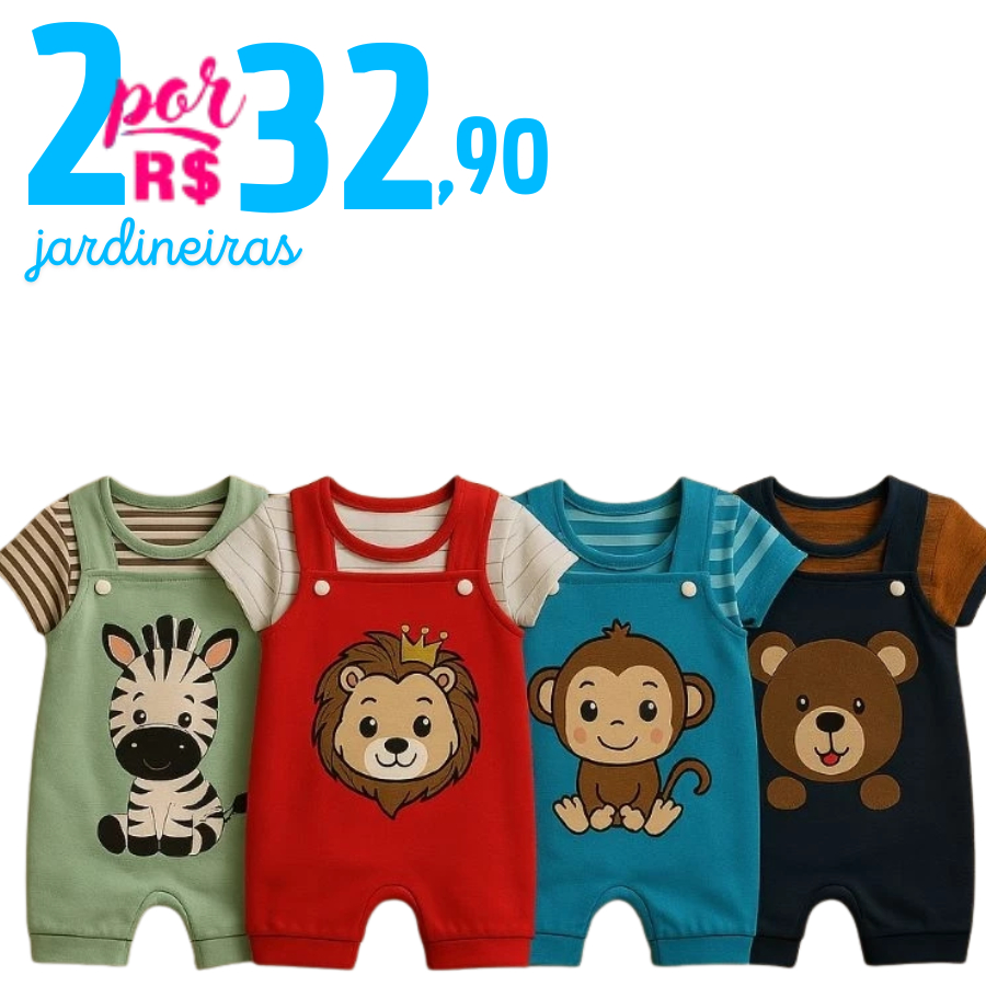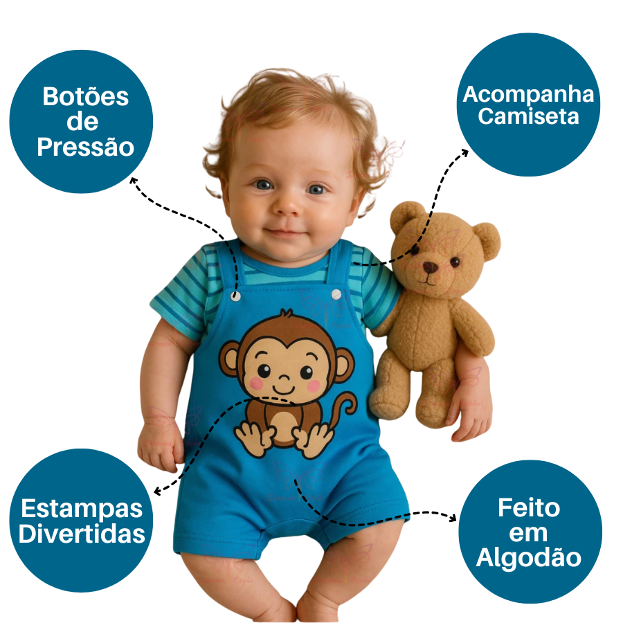 Kit 4 Peças Jardineira de Bebê Menino 2 Jardineiras + 2 Camisetas Safari Verão 0 a 6 Meses