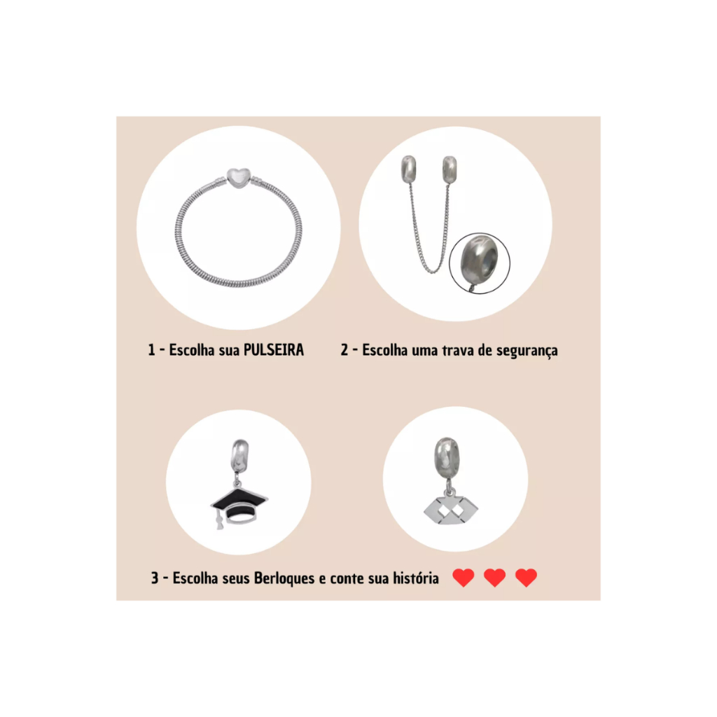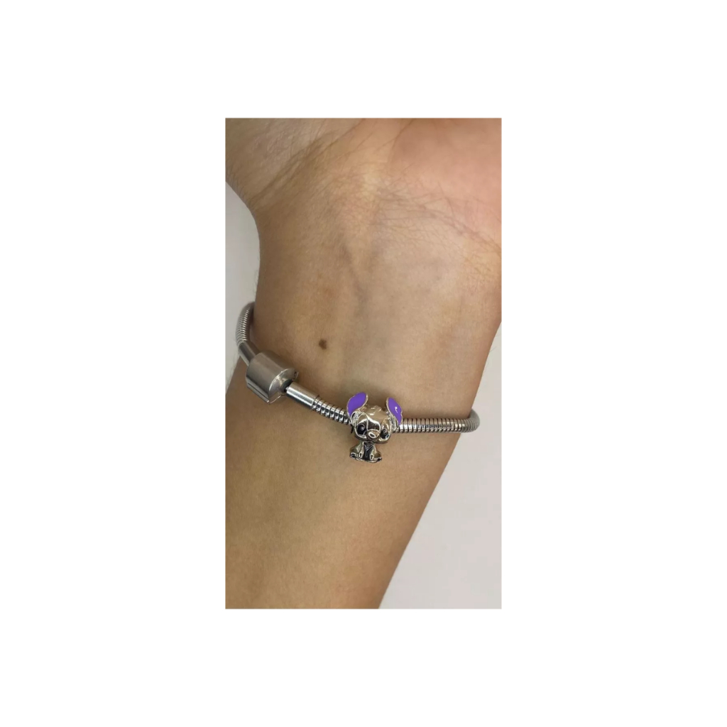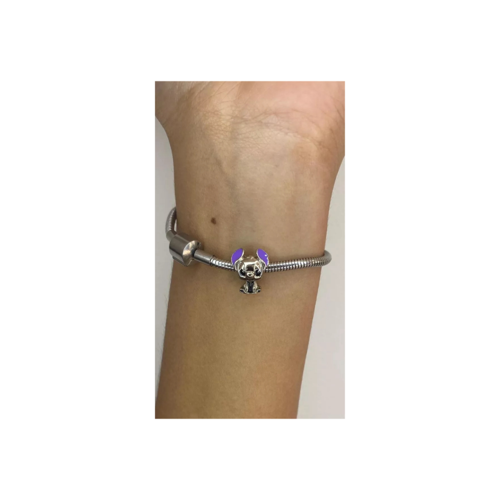Pulseira de Charm Aço Inoxidavel Maleável Não Escurece + Brinde Berloque Stitch