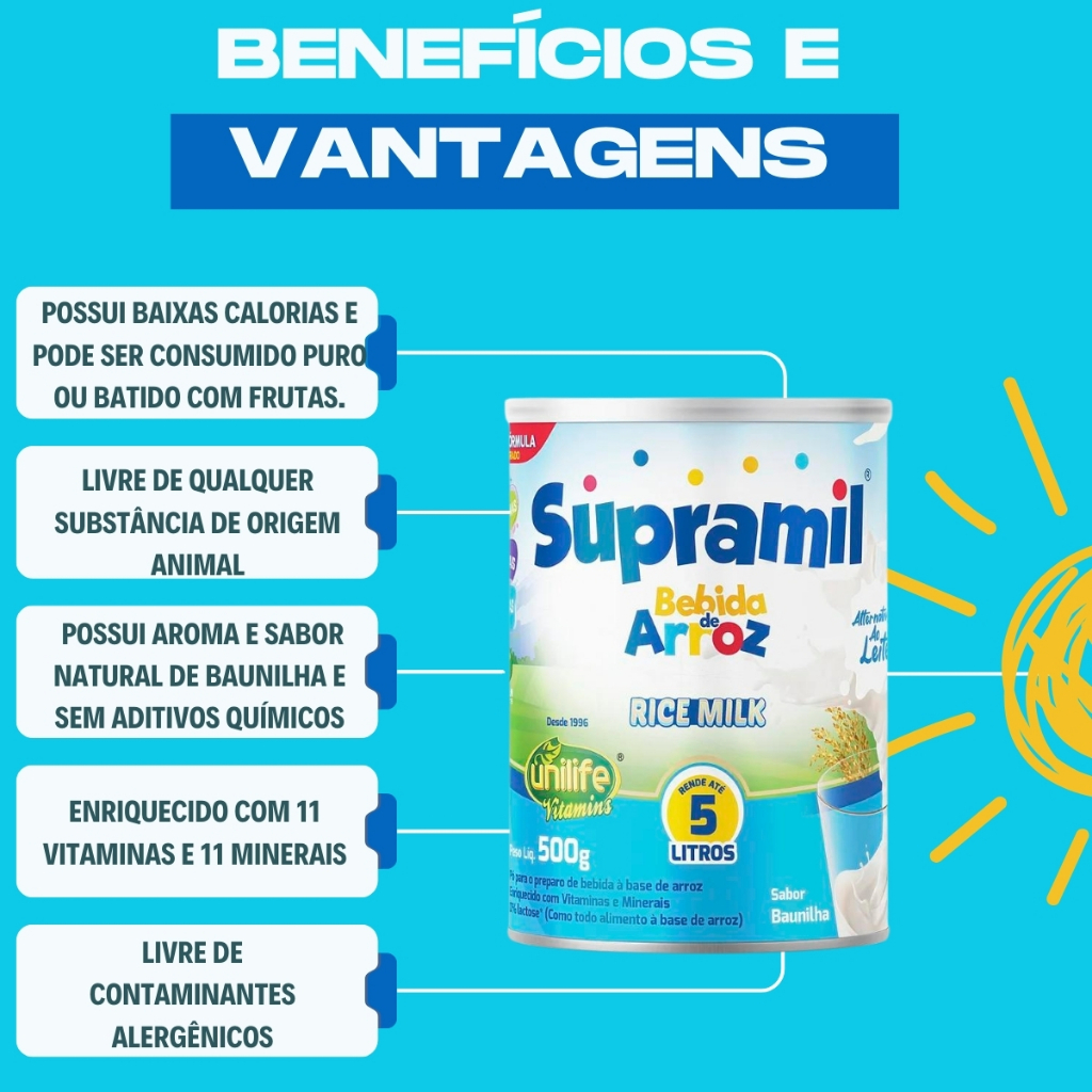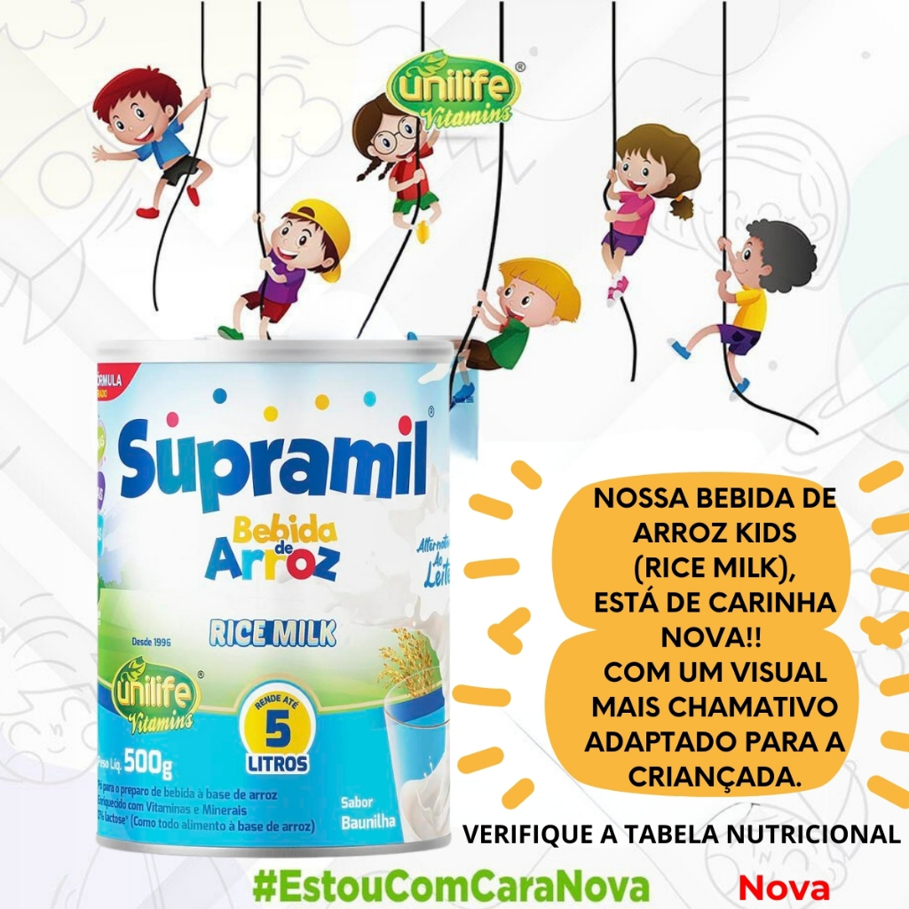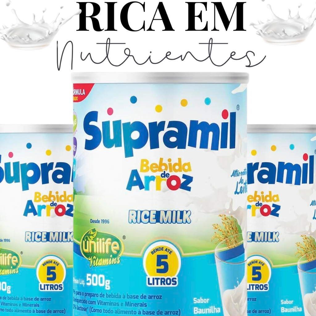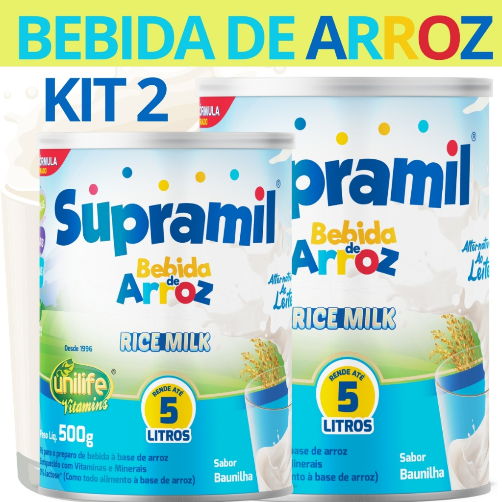 Kit 2 Bebida de Arroz Supramil Milk Kids Sem Lactose 500G Sabor Baunilha Rende 5 Litros Unilife