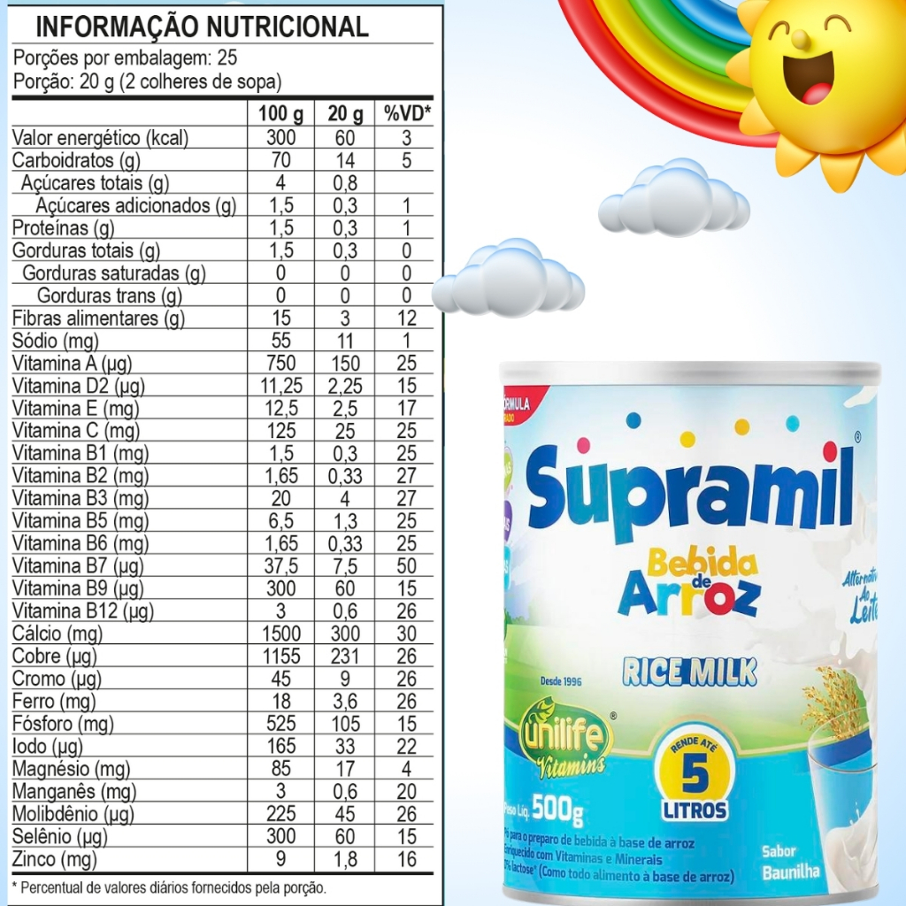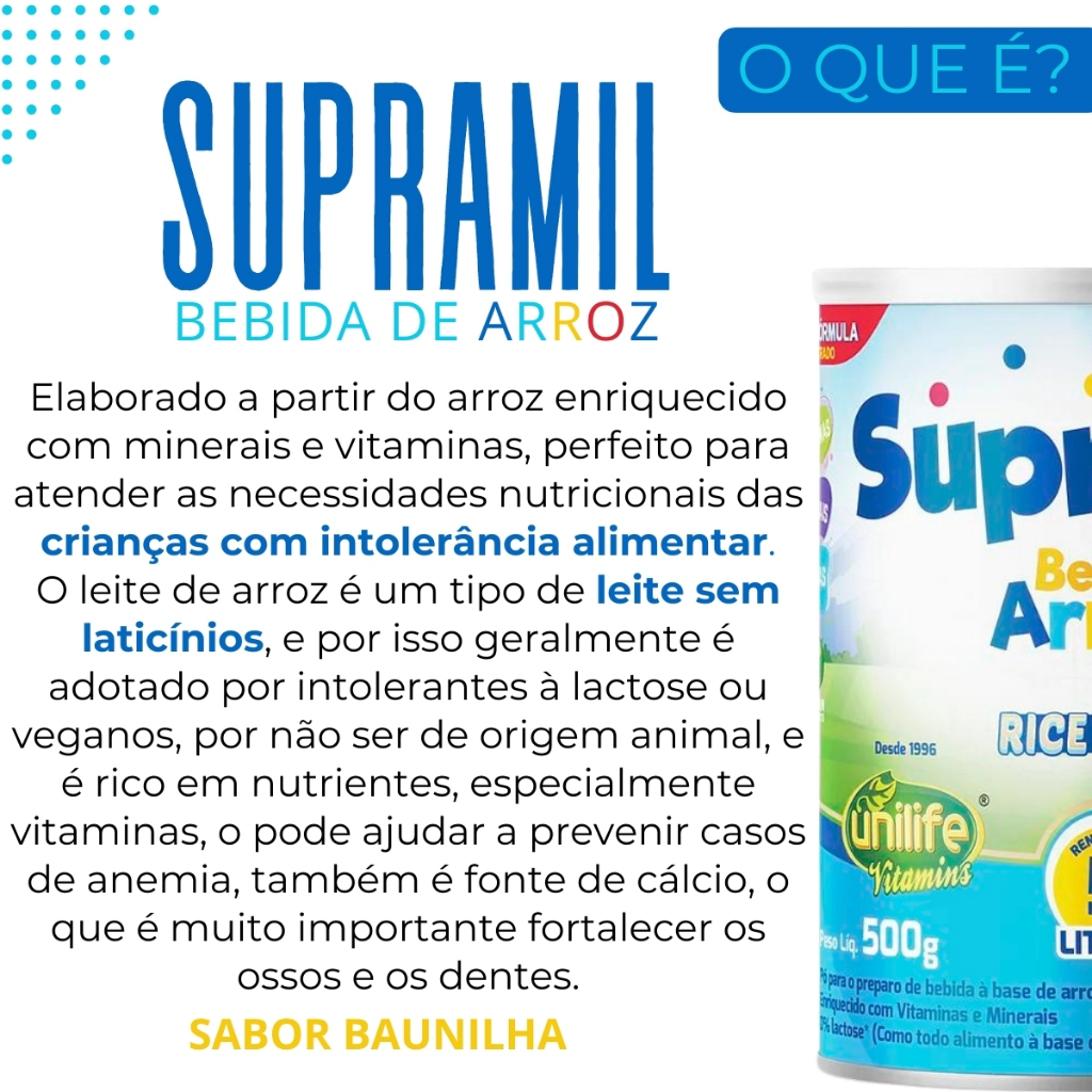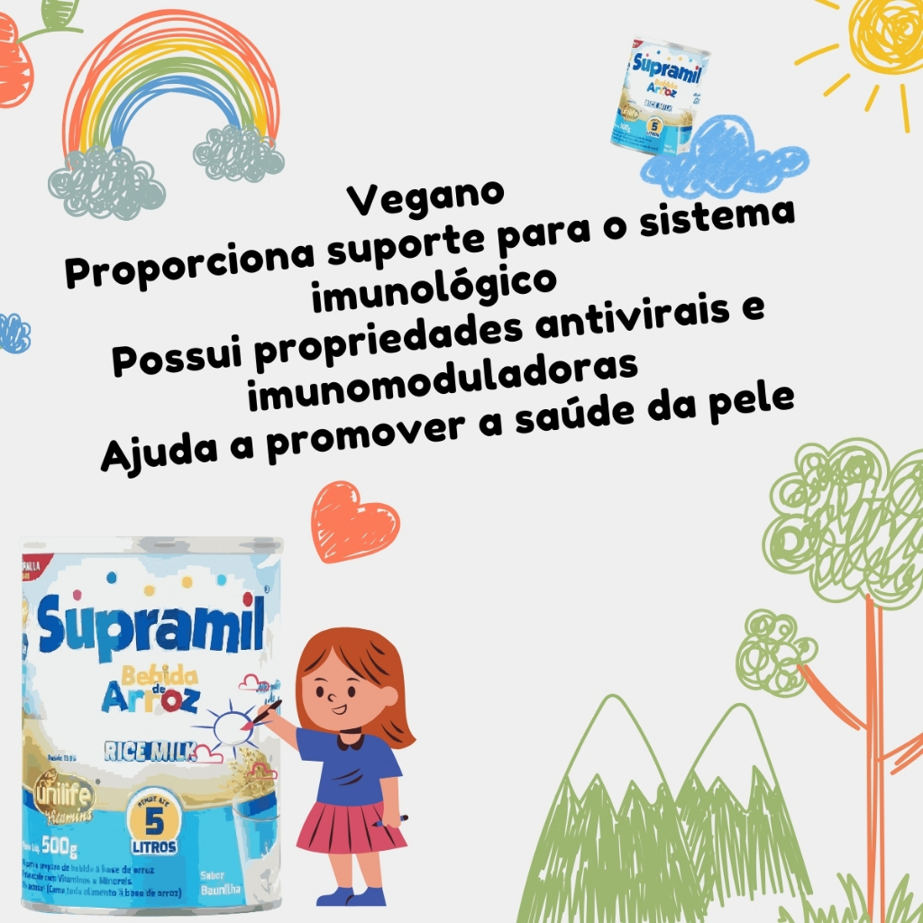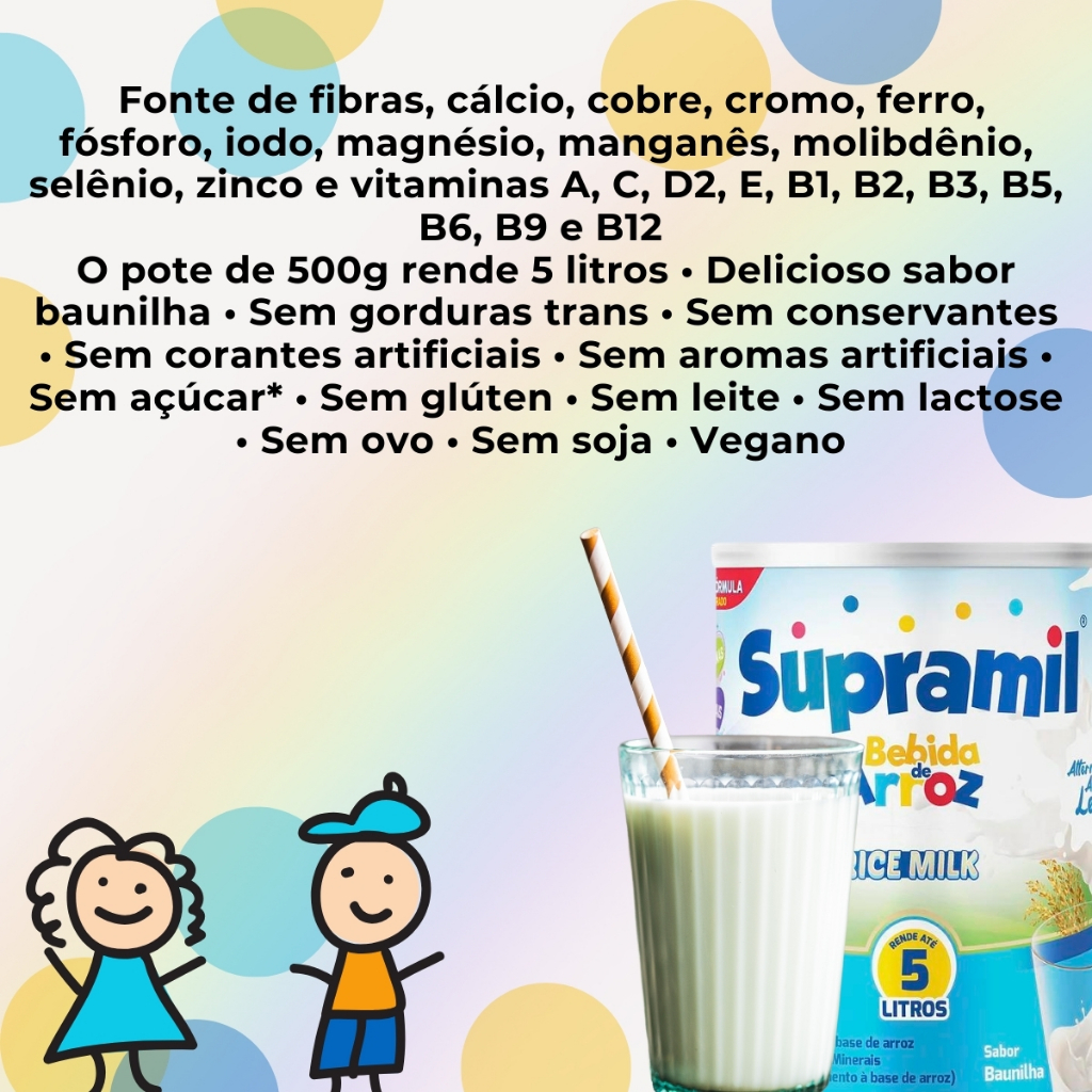 Kit 2 Bebida de Arroz Supramil Milk Kids Sem Lactose 500G Sabor Baunilha Rende 5 Litros Unilife
