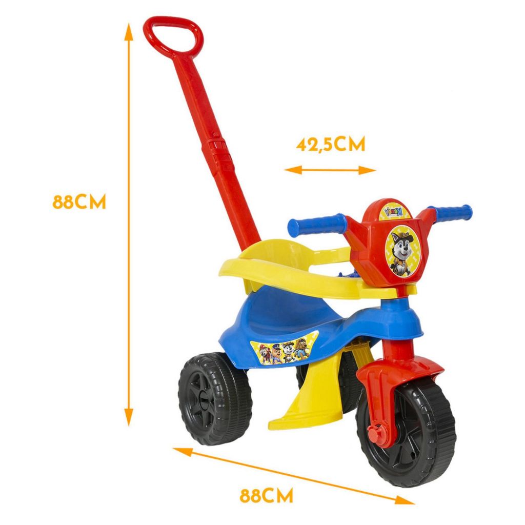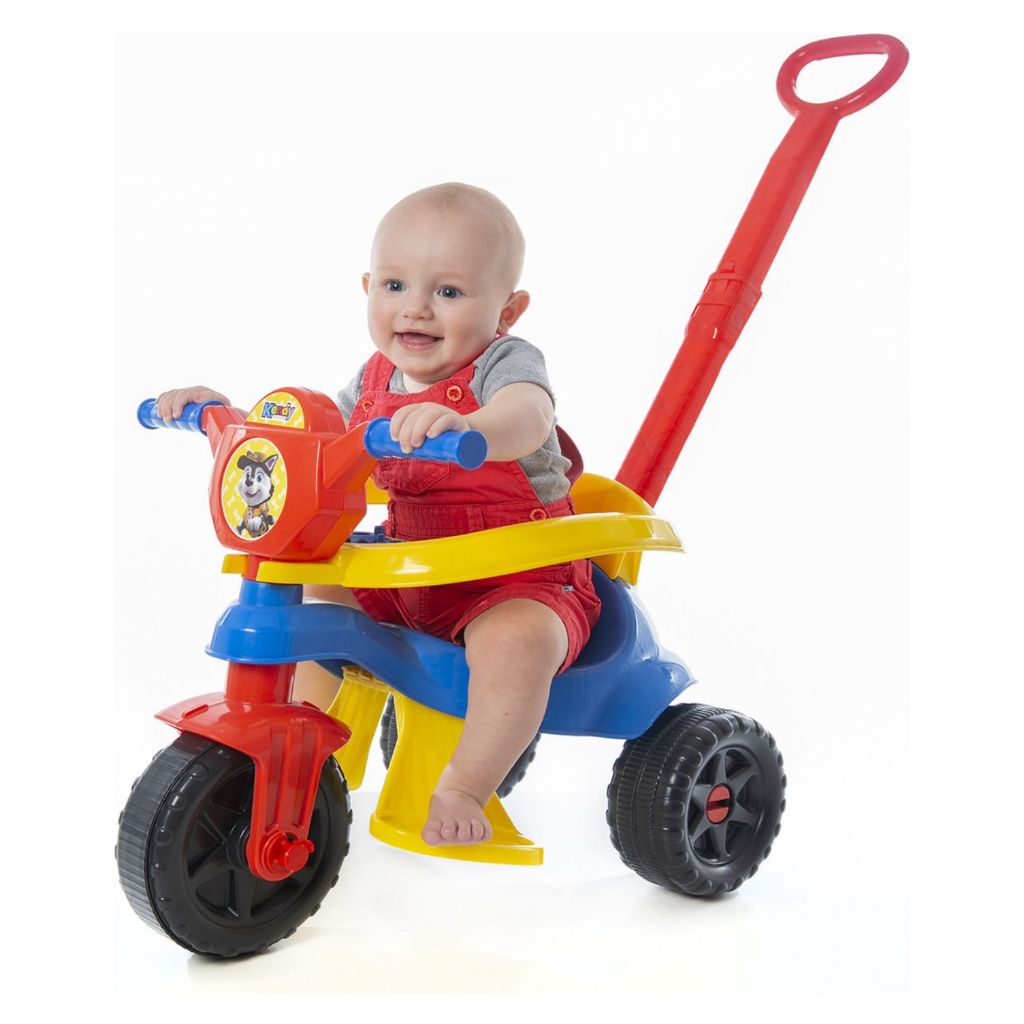 Motoca Triciclo Velocipide Kendy Patrulha Canina C/ Empurrador e Proteção Lateral Bebe Menino e Menina