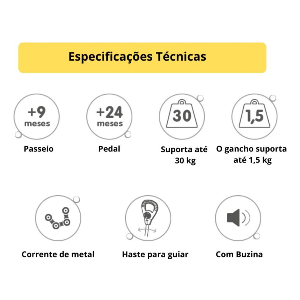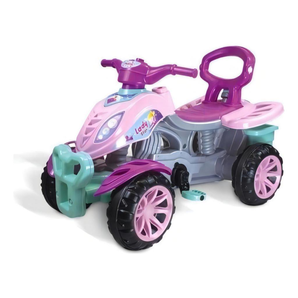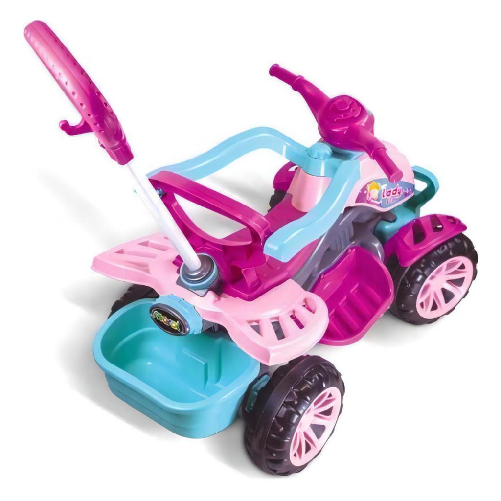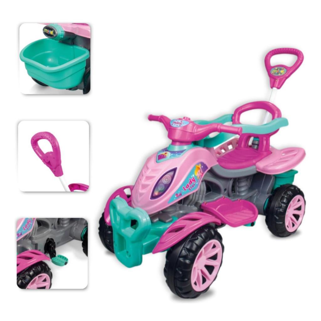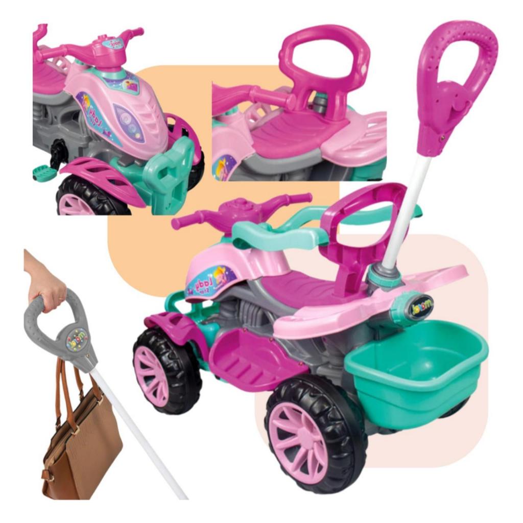 Carrinho de Passeio Maral Quadriciclo Menina e Menino 3 em 1 Velocipede Grande Com Pedal Haste de Empurrar