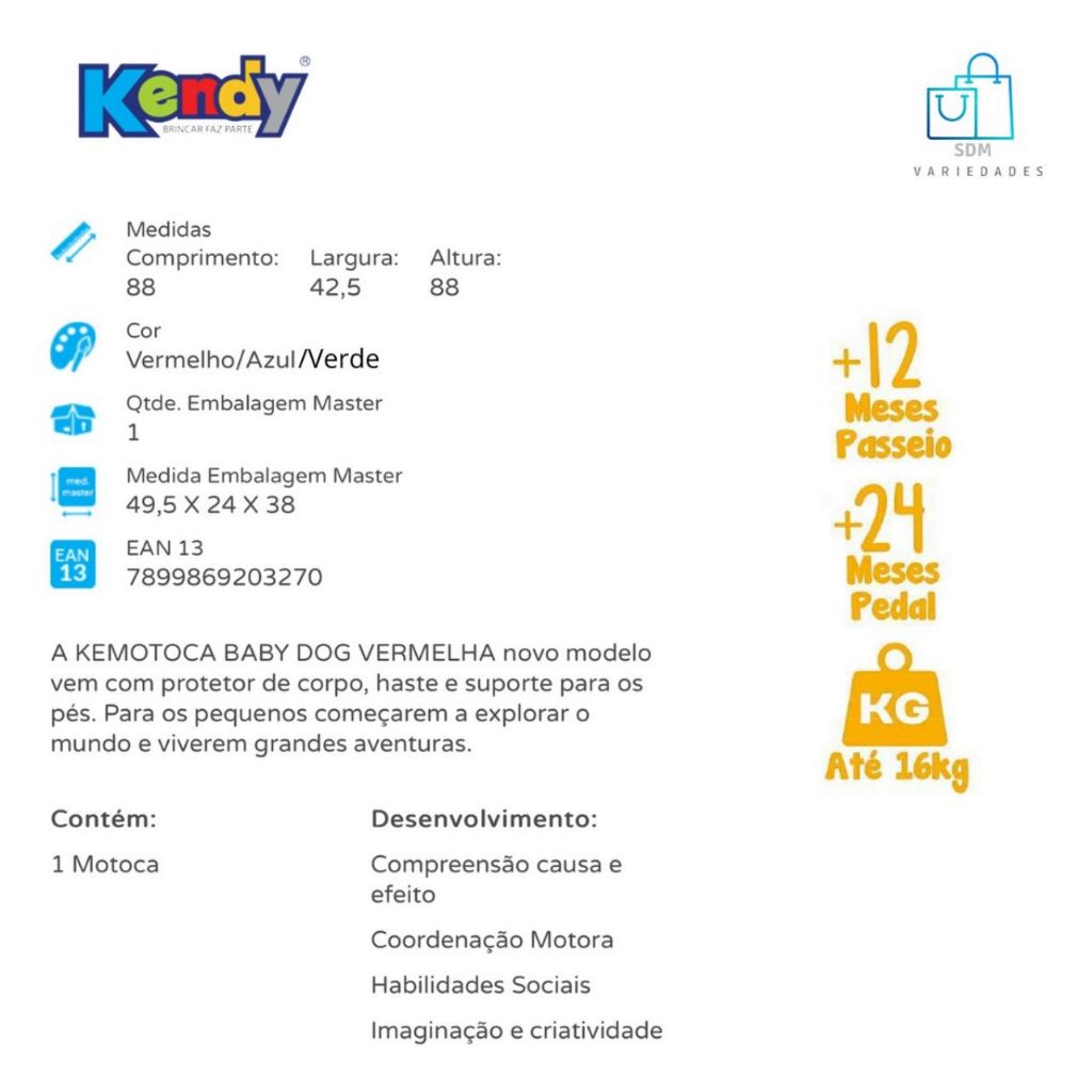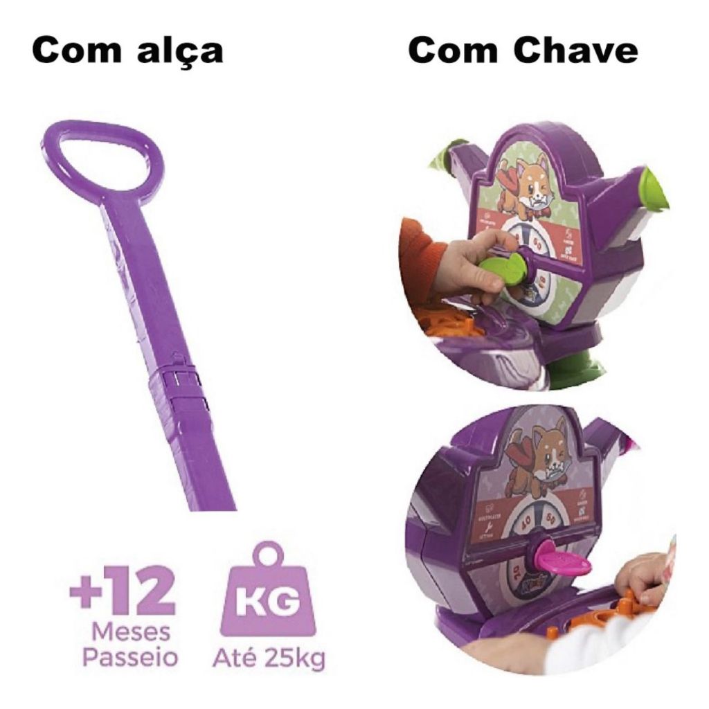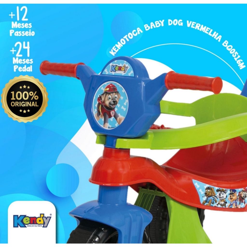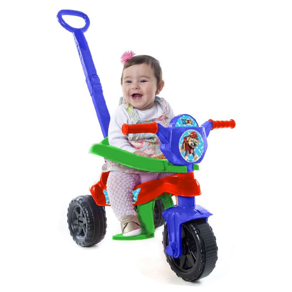 Motoca Vilotrol Triciclo Infantil Patrulha Canina Kemotoca Kendy Menino Menina Empurrador Pedal Proteção Lateral inmtro