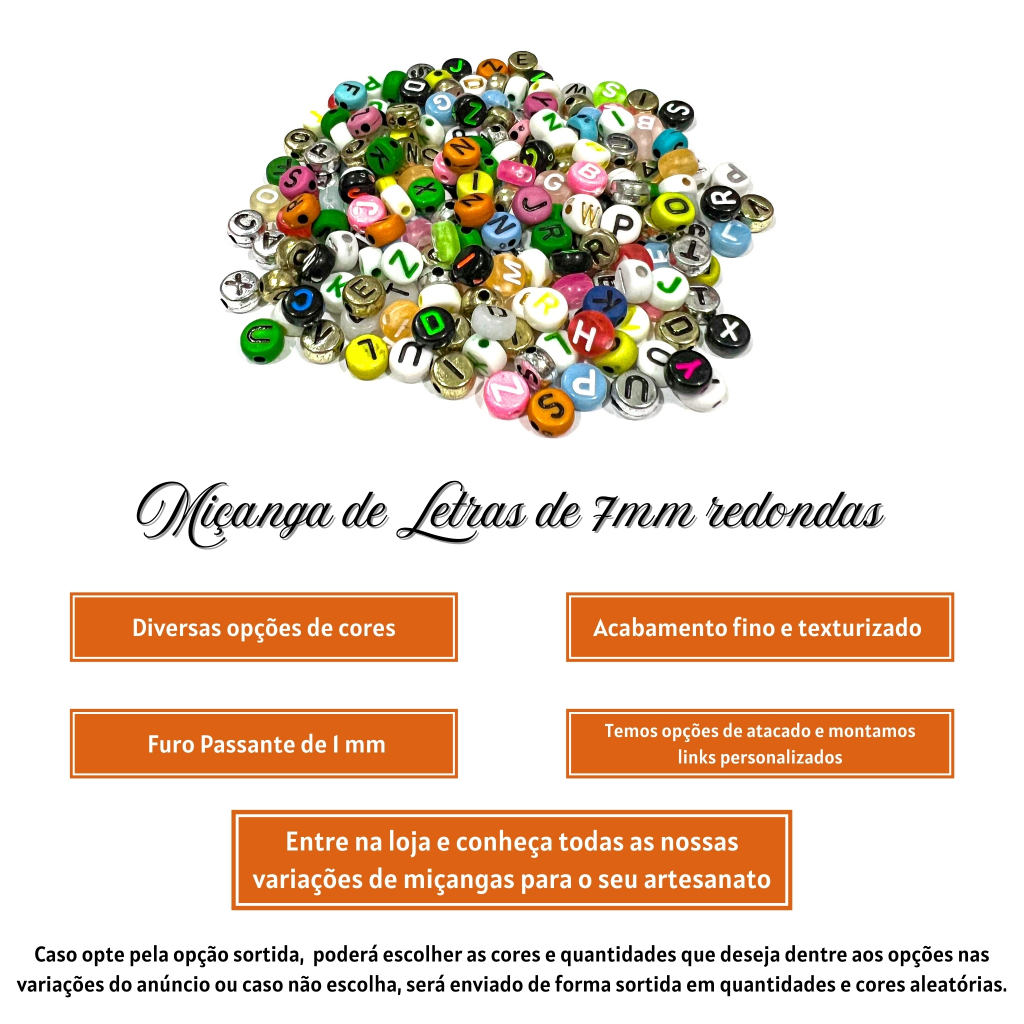 Miçanga Letras Alfabeto Colorido para artesanato 7mm - Escolha Cor