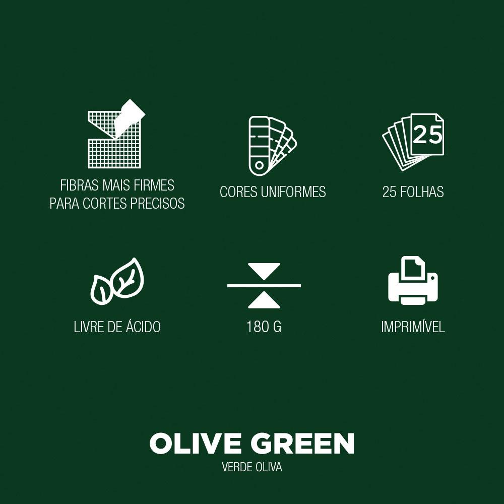 Papel Color Pop Verde Oliva Mimo - A4 - 180 gr - 25 unds