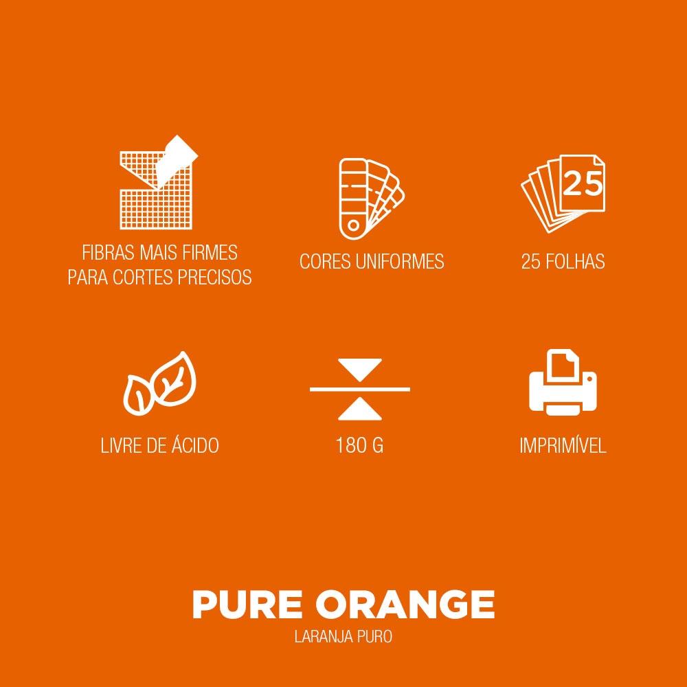 Papel Color Pop Laranja Puro Mimo - A4 - 180 gr - 25 unds