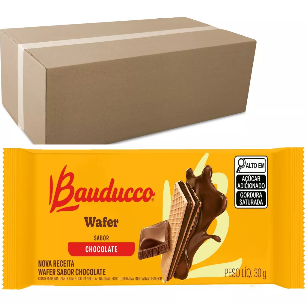 Biscoito Mini Wafer Chocolate Bauducco Caixa Com 24 Sachês De 30g
