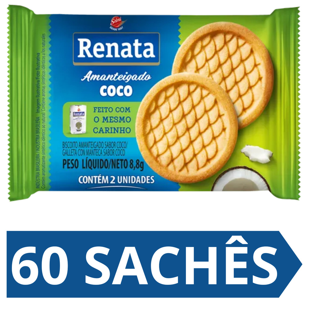 Kit 120 Sachês Biscoito Renata Sabores Leite E Coco