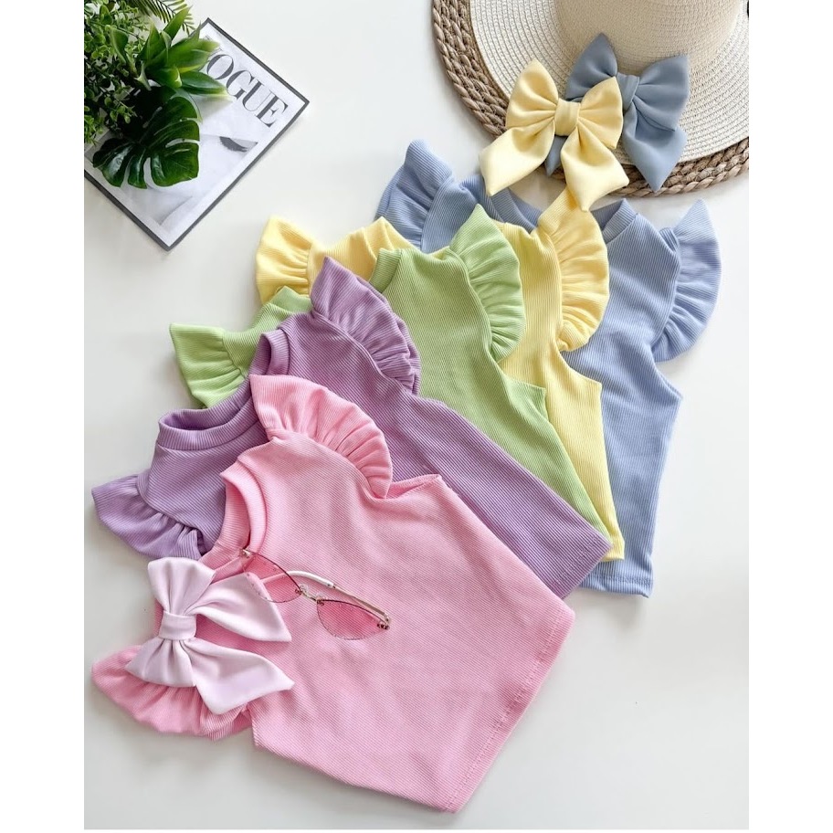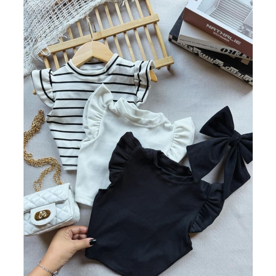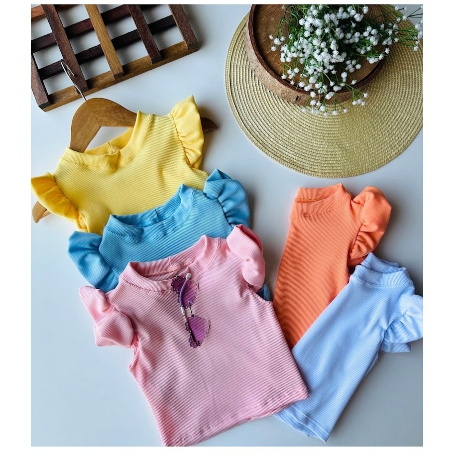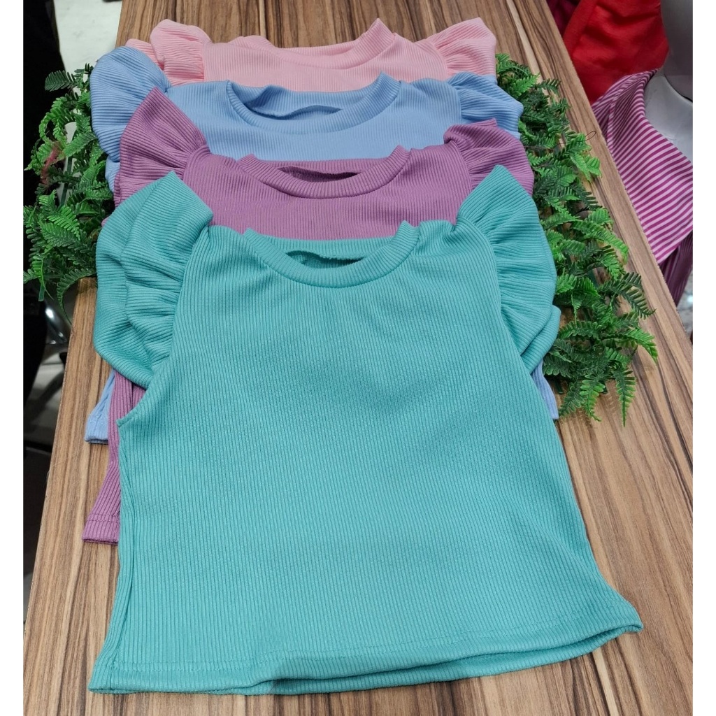 Blusa Cropped Infantil e Juvenil Canelada Ribana Com Manga Frufru (Binf510)