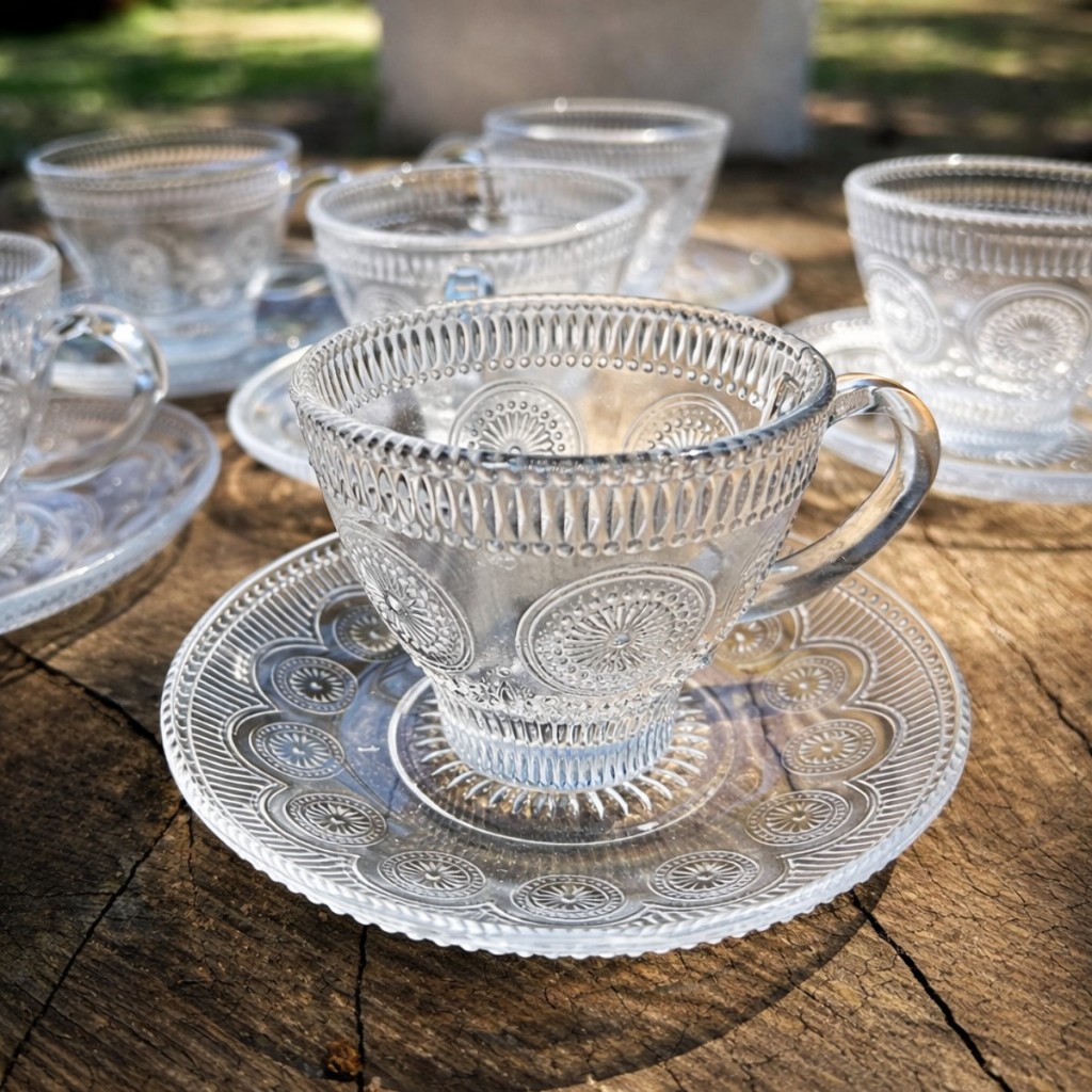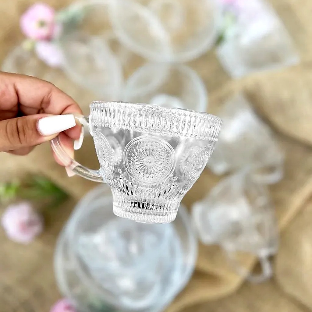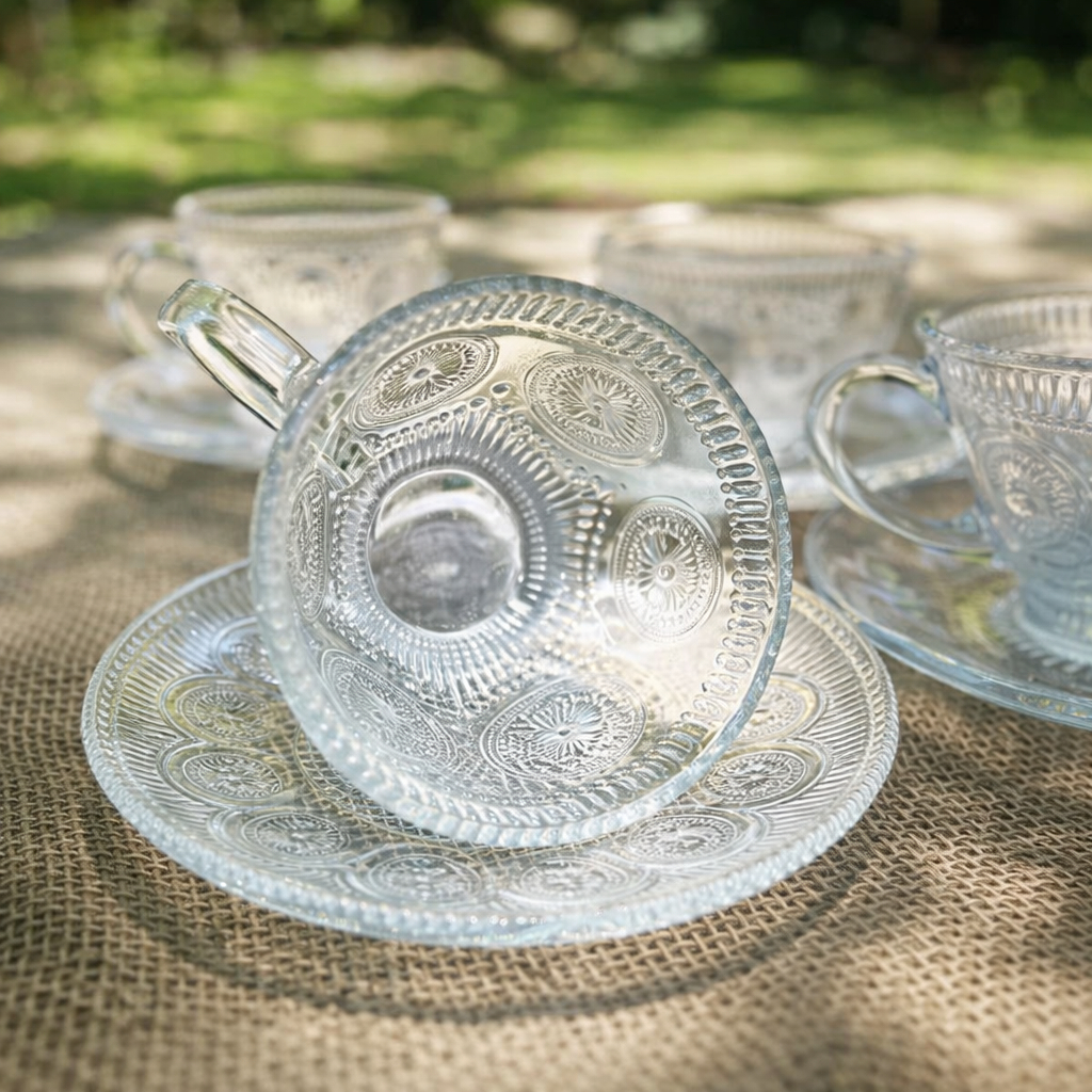 Jogo Xícaras de Vidro 220ml com Pires – Kit 3, 6 ou 12 Unidades para Café e Chá