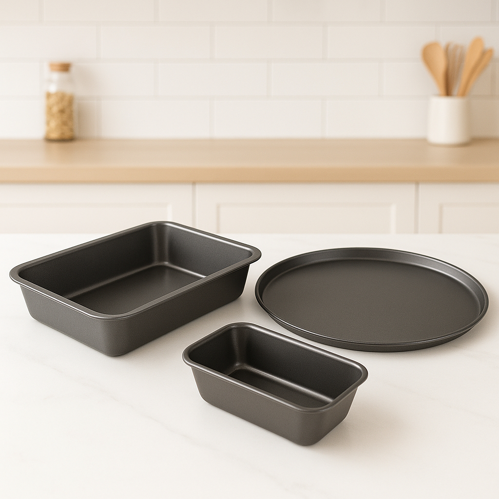 Kit 3 Formas Antiaderentes – Assadeira 32cm Pizza 31cm e Pão 25cm em Aço de Carbono