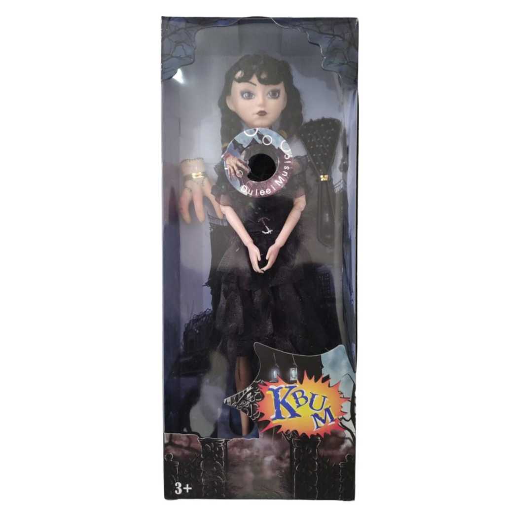 Boneca Wandinha Addams Musical e Luz 28 cm ou 33 cm Emborrachada c/ Acessórios Oferta