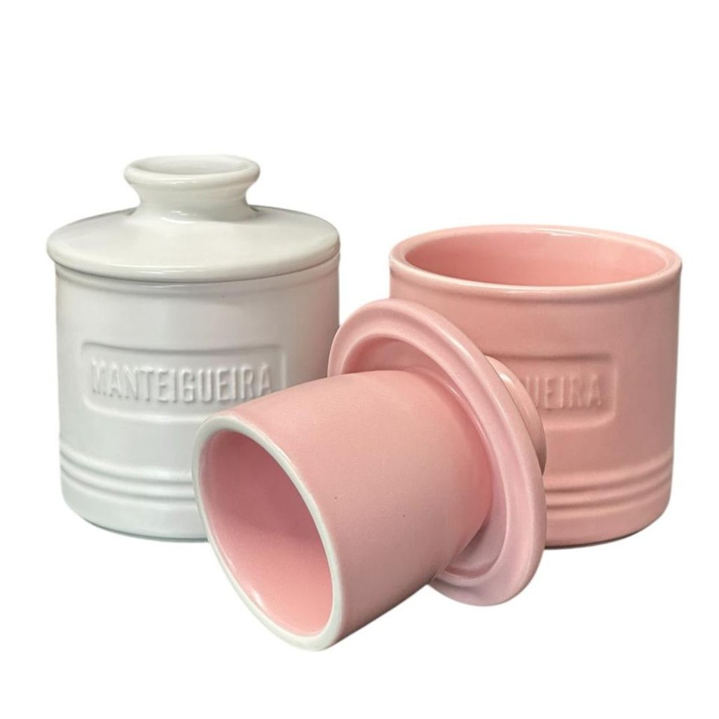 Manteigueira Francesa Matte Rosa Branca em Cerâmica - Wolff