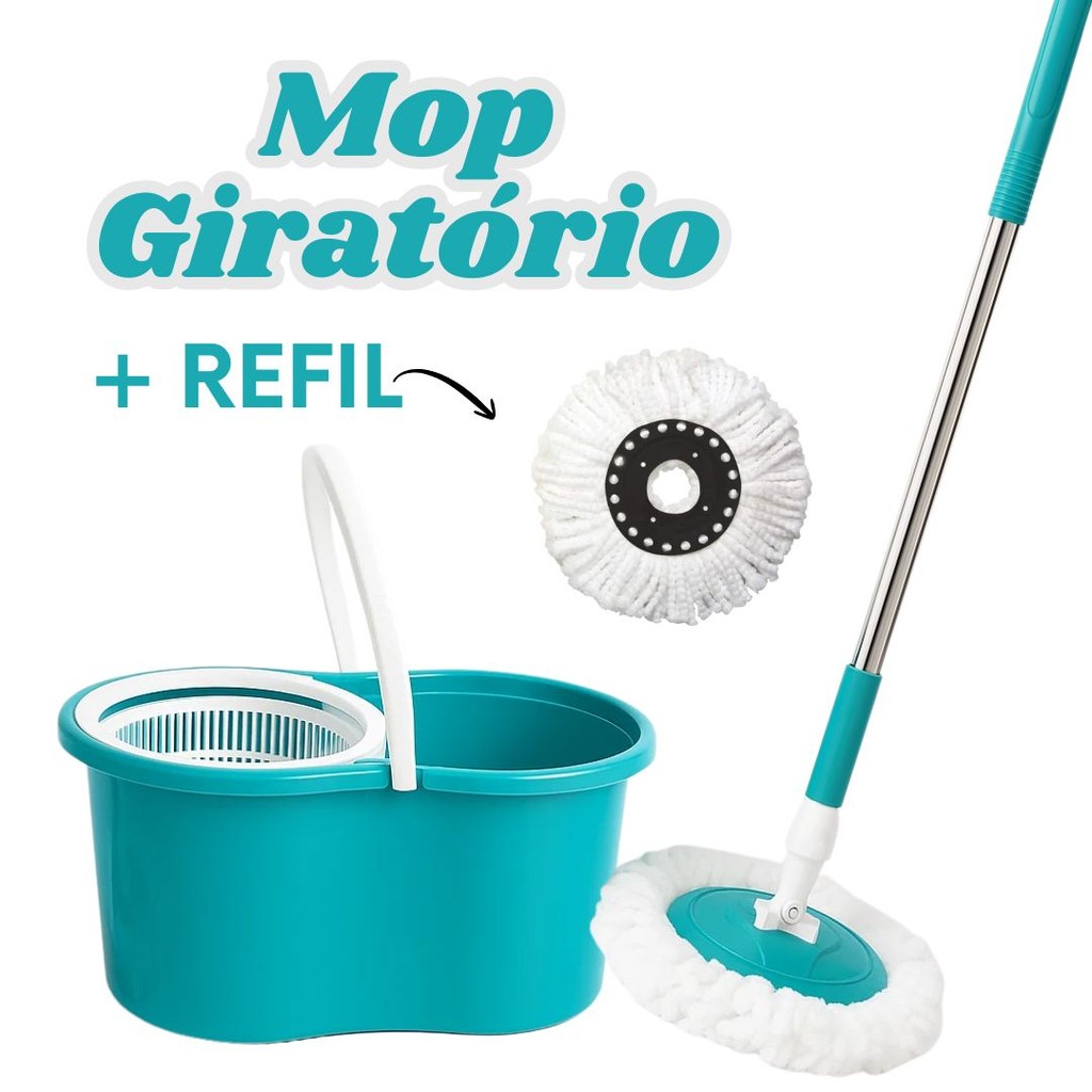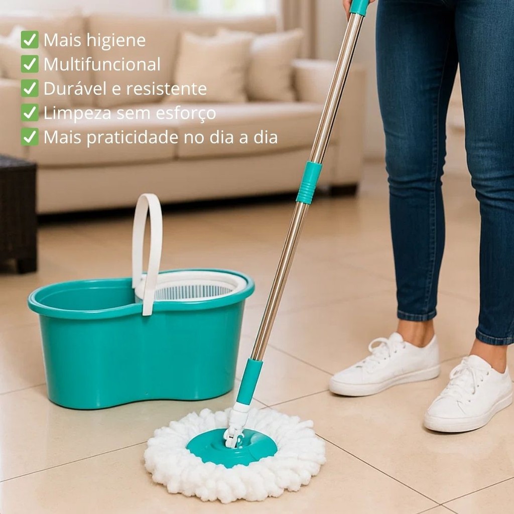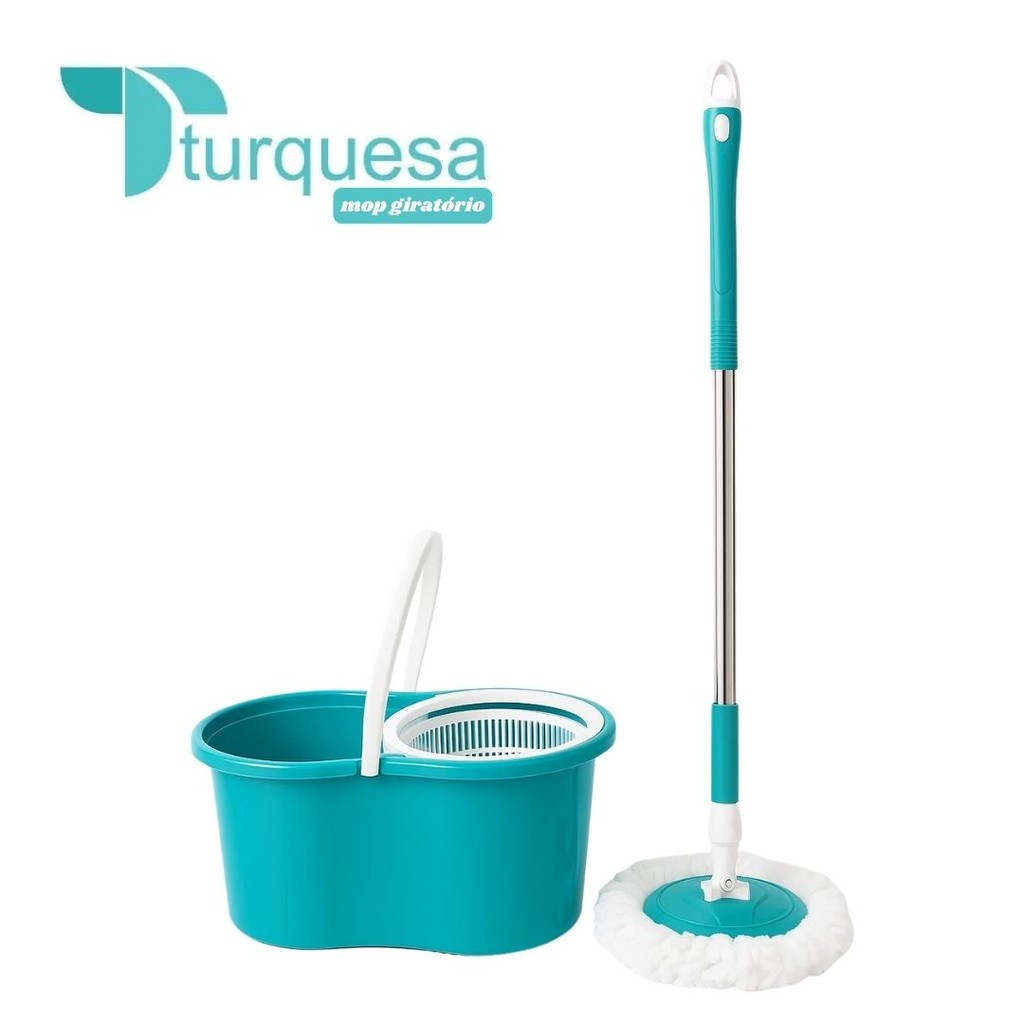 Mop Giratório Esfregão Rodo Para Limpeza Fácil 360° Cabo de Aço - Turquesa