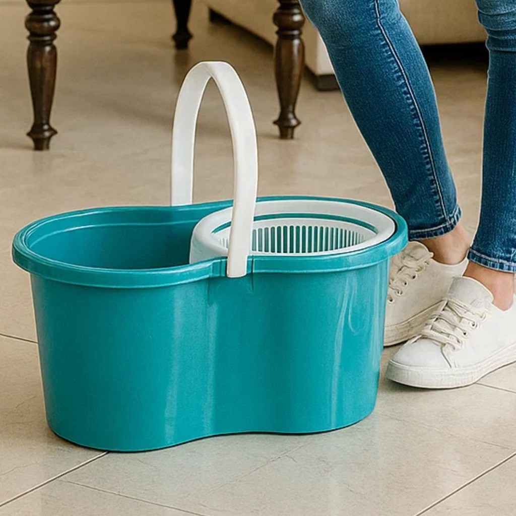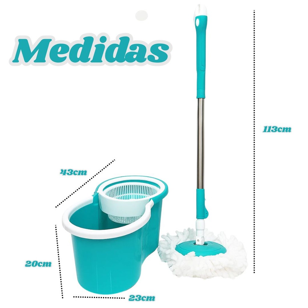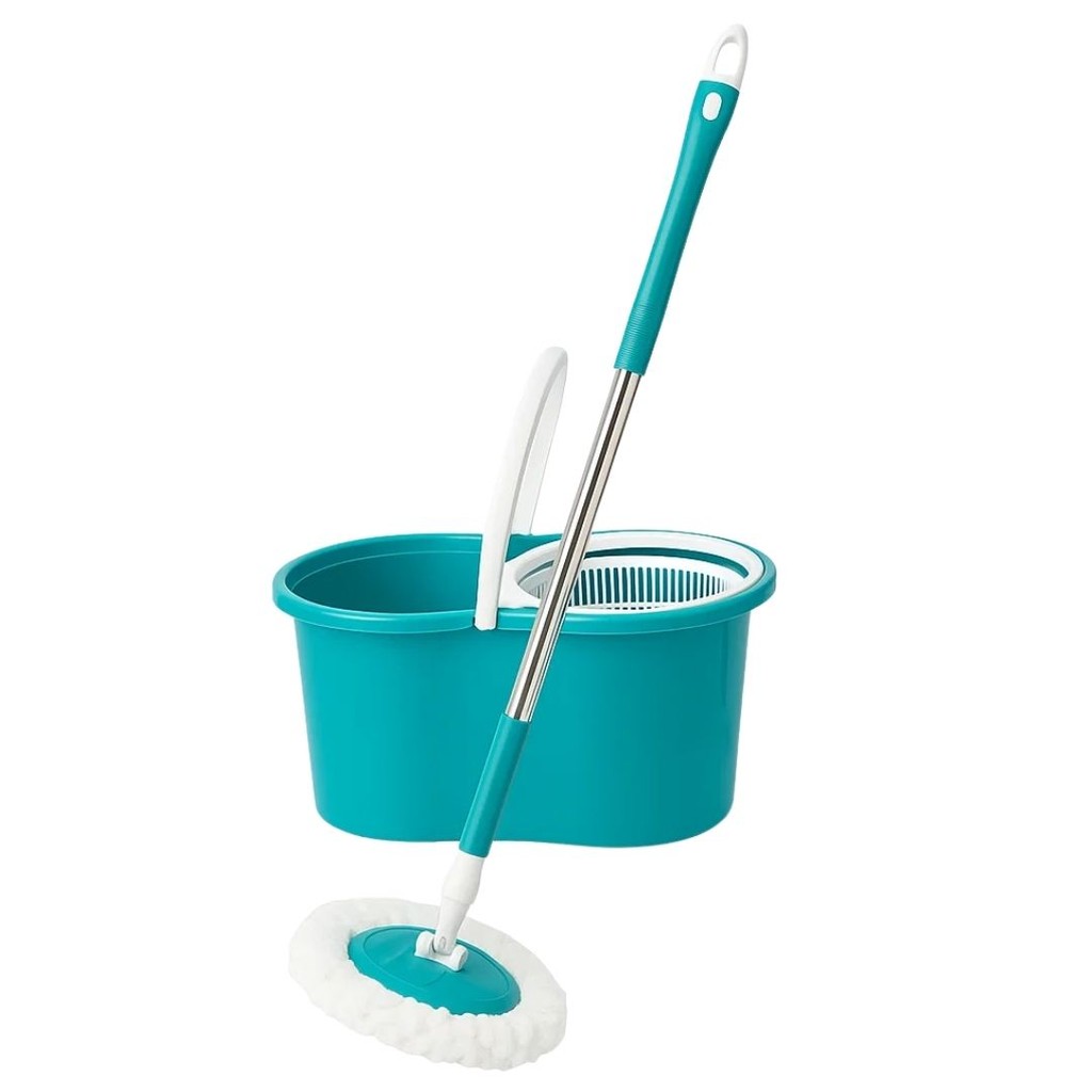 Mop Giratório Esfregão Rodo Para Limpeza Fácil 360° Cabo de Aço - Turquesa