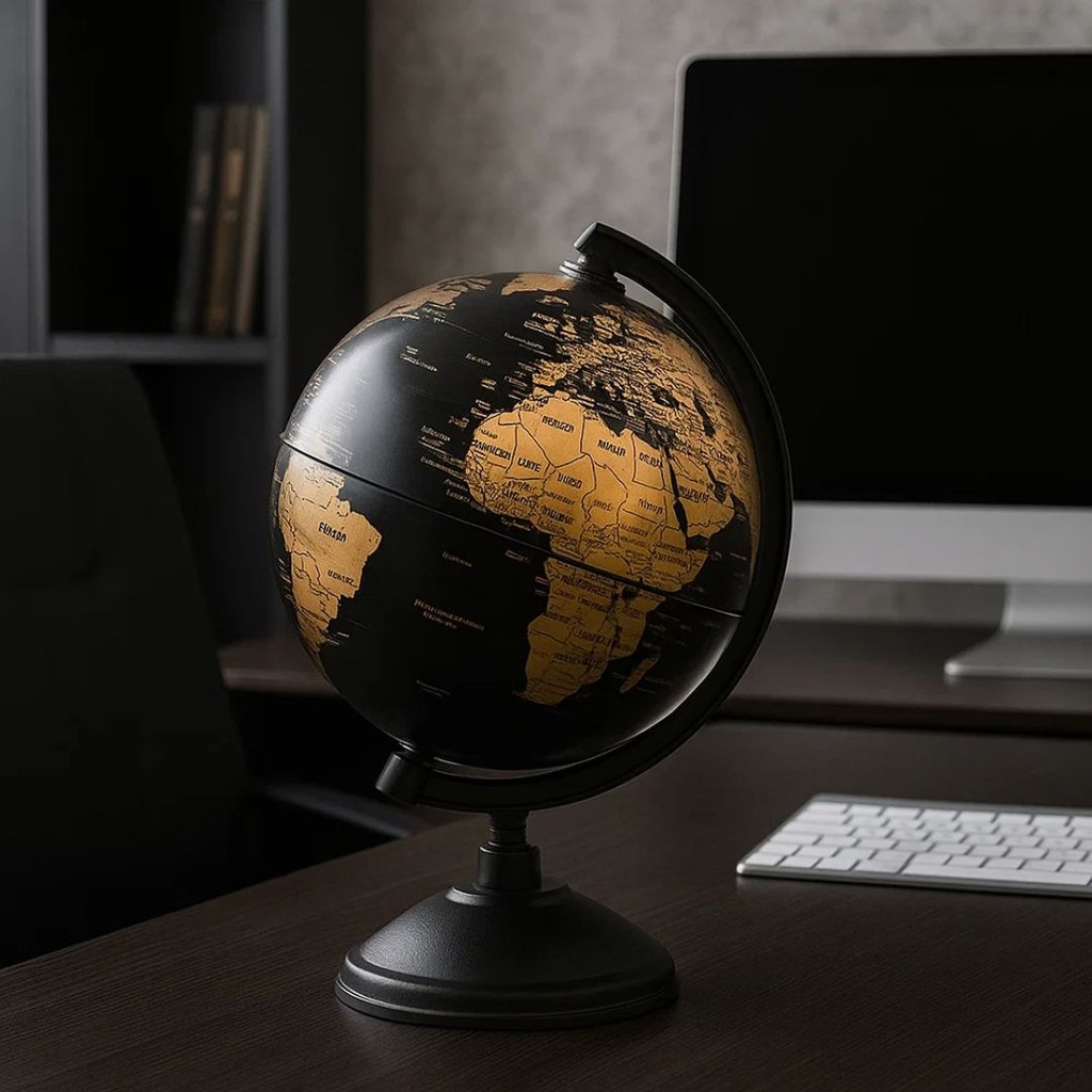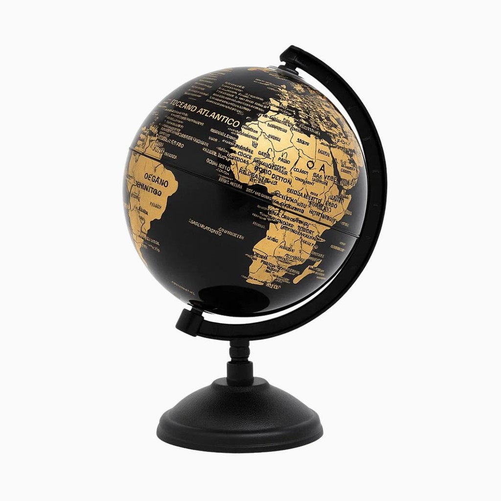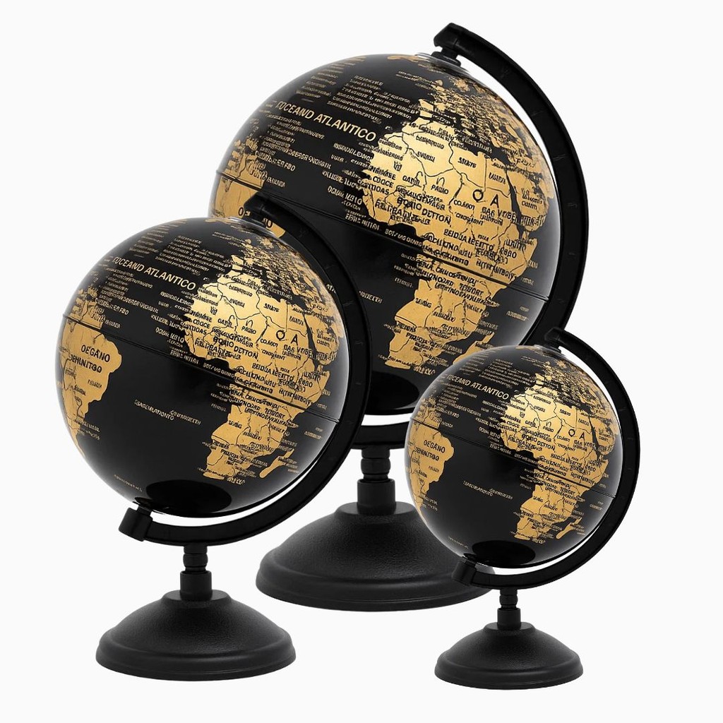 Globo Terrestre Escolar Giratório P/ Mesa Dourado Vencedor