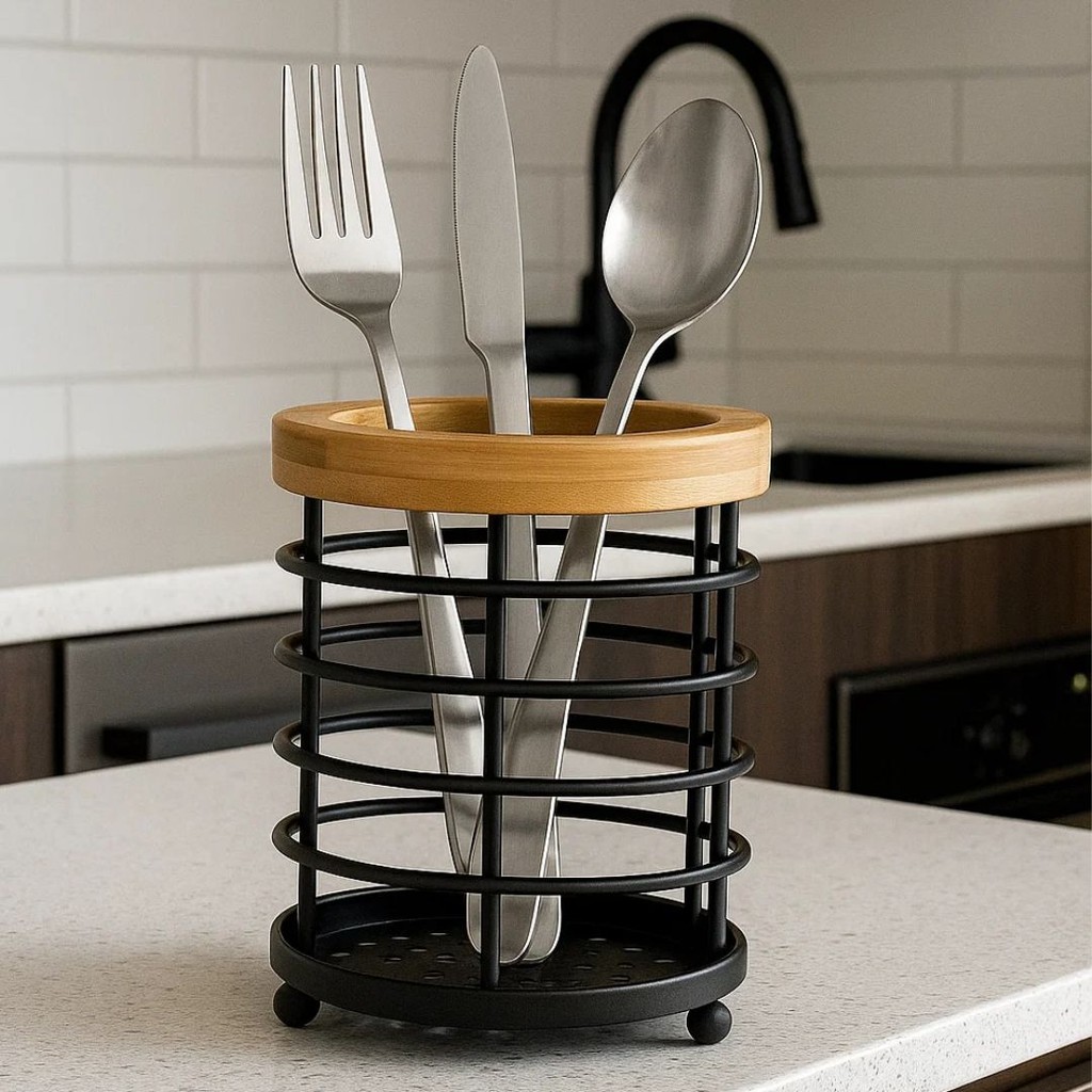 Porta Talheres Aramado Metal / Bambu - Vencedor