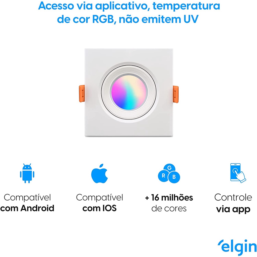 Spot Embutir Quadrado 5W LED Smart RGB Bivolt Inteligente Integrado Alexa Google Assistant