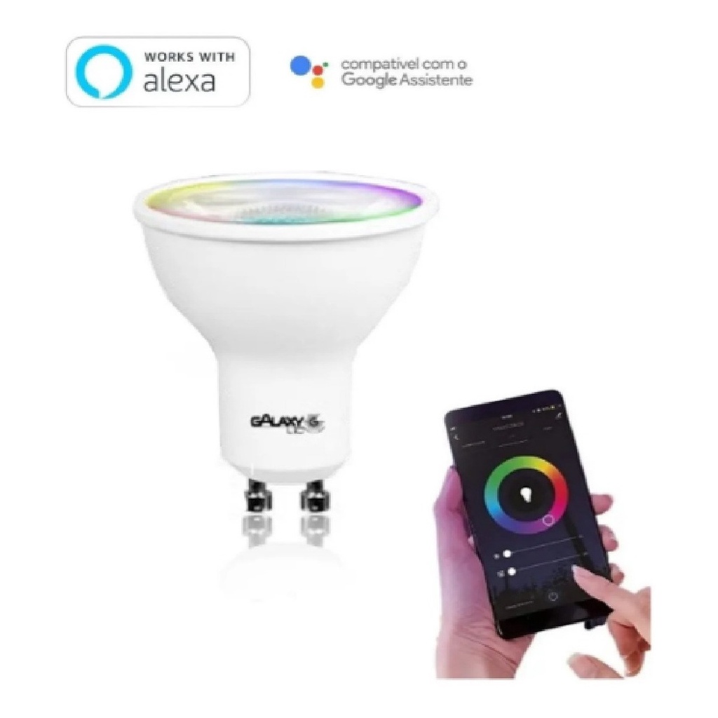 Lâmpada Dicróica GU10 MR16 Smart RGB Várias Cores Google Home Alexa Smart Casa Inteligente