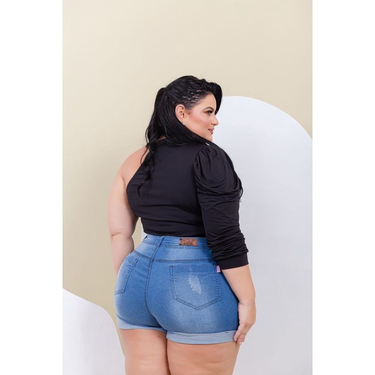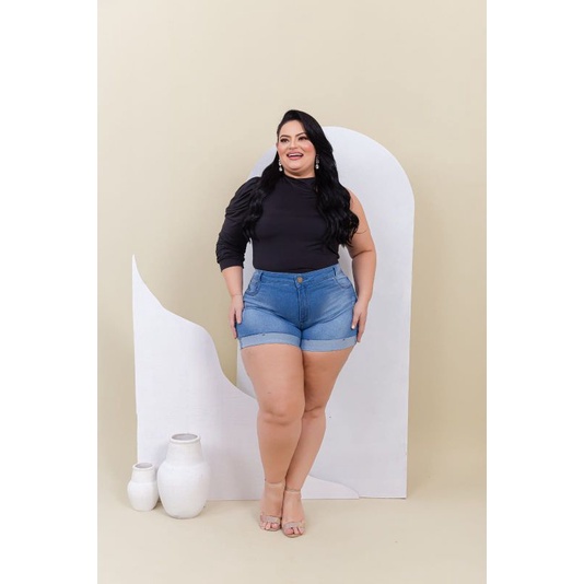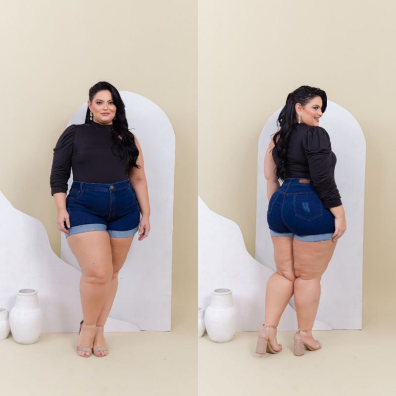 Short jeans Perna dobrada Plus Size tamanho grande 46-64